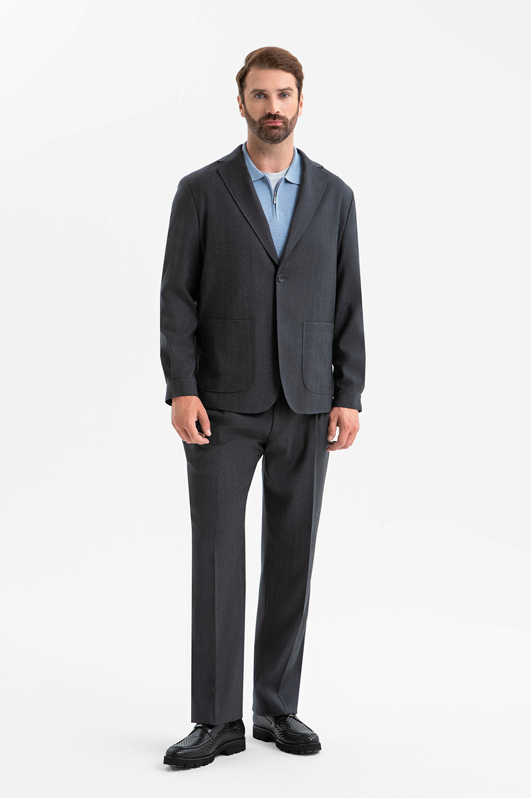 Костюм из шерсти, устойчивой к сминанию и загрязнениям