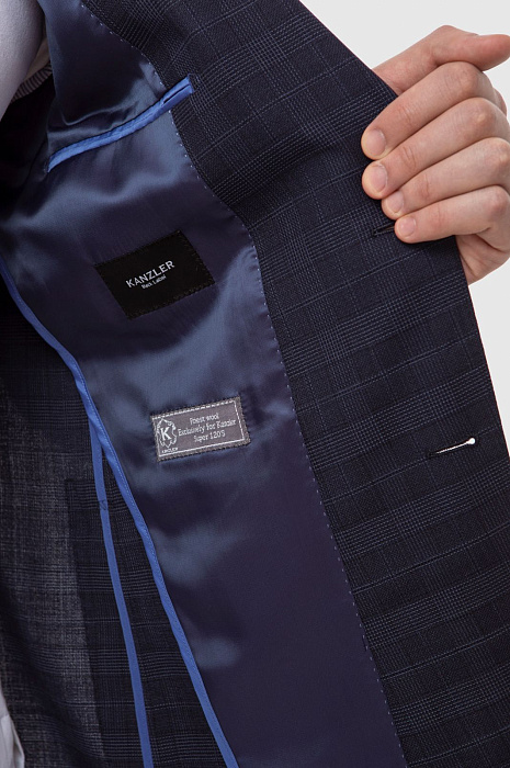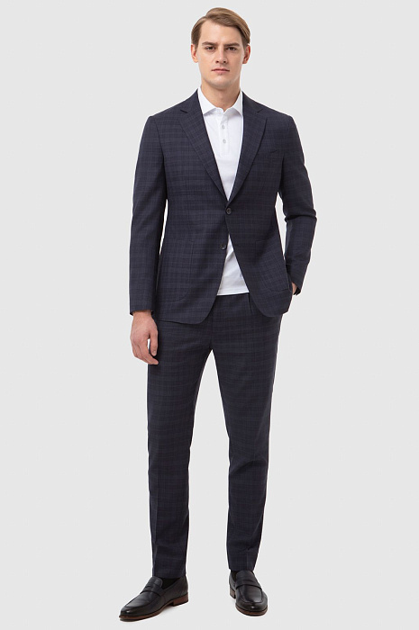 Костюм из шерсти в клетку с брюками на кулиске с водоотталкивающей обработкой, устойчивый к загрязнениям, цвет синий, цена 24 980 руб., код - купить в Самаре в интернет-магазине KANZLER