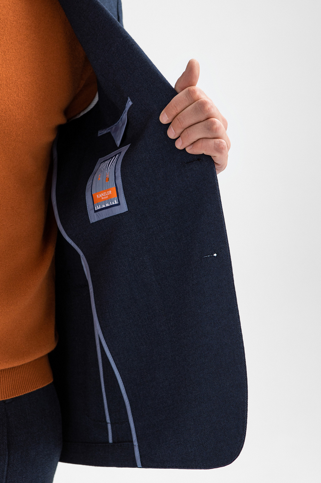 Тёмно-синий костюм KANZLER воплощает новое понимание классики, которая в равной мере сочетает комфорт и элегантность. Однобортный пиджак универсального кроя подчёркивает естественность линий и не сковывает движений. Накладные карманы не утяжеляют силуэт и придают образу современность. Удобные слегка зауженные брюки на кулиске позволяют одинаково уверенно чувствовать себя и в офисе, и в поездке, и на отдыхе. Практичный костюм-двойка выполнена из долговечной и лёгкой в уходе инновационной ткани. Смесовый материал отличается благородным матовым лоском, мягкостью и хорошей воздухопроницаемостью.
