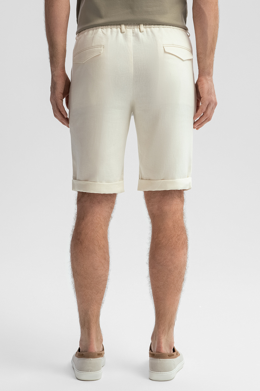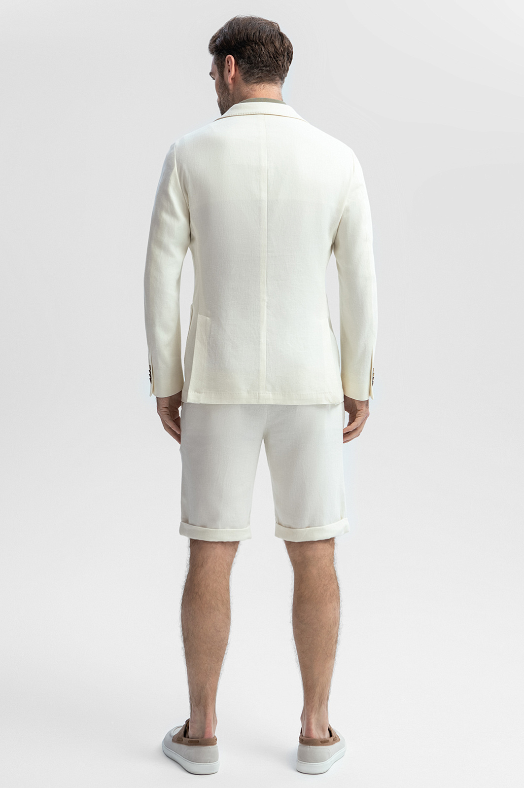 Белый костюм KANZLER изо льна и тенсела с шортами обеспечит элегантный и безупречный вид в раскаленном городе. Жарким летом в нем можно отправиться в офис, где царит гуманный дресс-код, на прогулку или неформальную встречу. Двойка состоит из облегченного пиджака без подкладки изящного прилегающего кроя и удобных свободных шортов на кулиске с отворотами. Прикосновение к ткани из природных слегка шероховатых волокон дарит чувственное удовольствие. В составе гипоаллергенного материала — прочный гладкий лен, охлаждающий кожу в жару, и тенсел, который отводит лишнюю влагу и поддерживает свежесть тела.