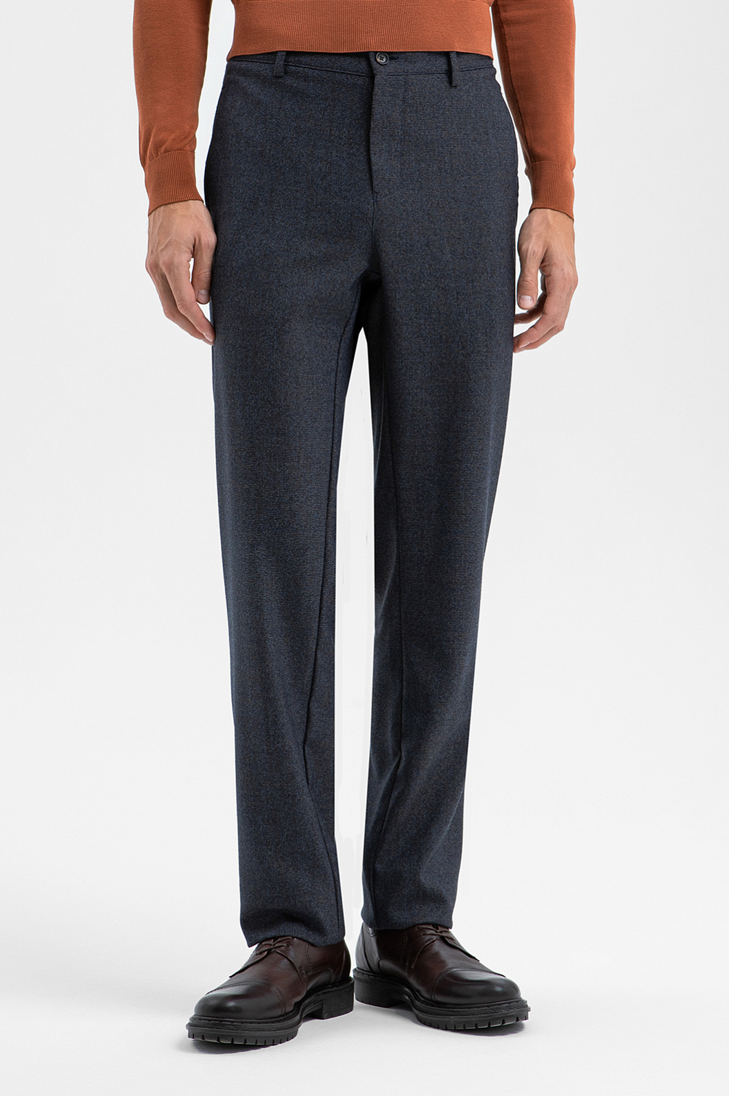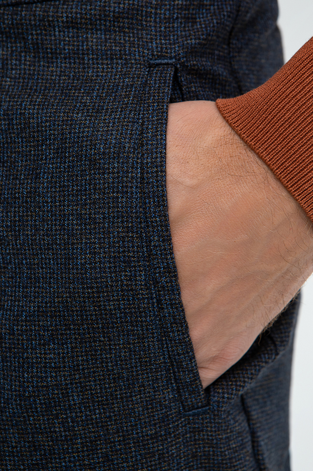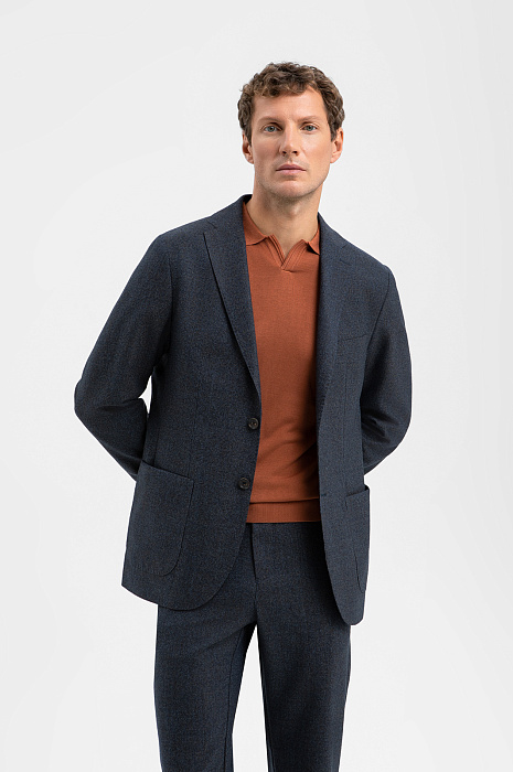 Костюм KANZLER из дорогой шерсти мериноса спокойного синего оттенка в микроклетку из лимитированной коллекции декларирует вневременную элегантность, превращая роскошную сдержанность в современную деловую эстетику. Двойка составлена из однобортного пиджака полуприлегающего силуэта с накладными карманами с прочной коричневой подкладкой и брюк прямого кроя с подкладкой из смесового хлопка. Ткань из 100% шерсти сочетает натуральный шик и исключительные тактильные качества. Тонкие упругие волокна сохраняют естественное тепло и «дышат», предотвращая перегревание тела. Они устойчивы к сминанию и способны восстанавливать форму, что гарантирует аккуратный вид костюма без лишних усилий.