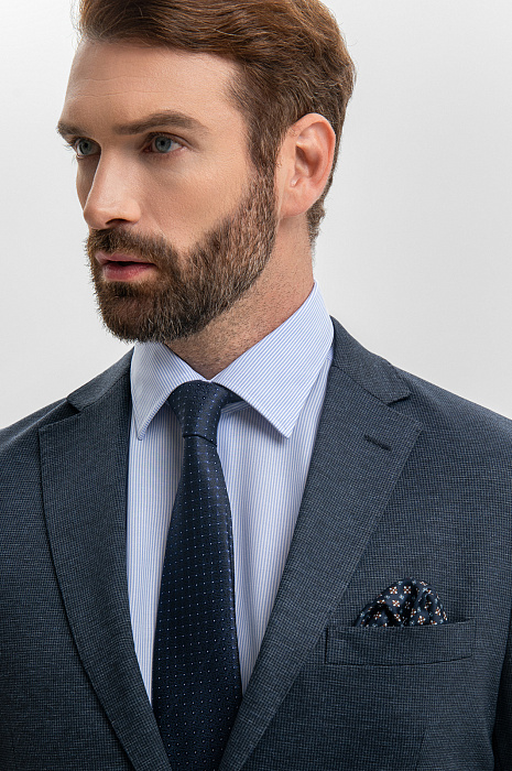 Современный повседневный костюм KANZLER сдержанного синего цвета может стать комфортной базой для офиса и одеждой для неформальных выходов, требующих элегантности и собранности. Элегантная двойка составлена из однобортного пиджака без подкладки с накладными карманами и удобных брюк с регулируемым поясом на кулиске. Силуэт подчеркивает плечи и линию талии и визуально вытягивает фигуру. Практичный костюм сшит из технологичной смесовой ткани в микроклетку. Полиэстер обеспечивает долговечность и прочность, район — циркуляцию воздуха, гигроскопичность и мягкость, а небольшая добавка спандекса — сохранение формы и аккуратную посадку.