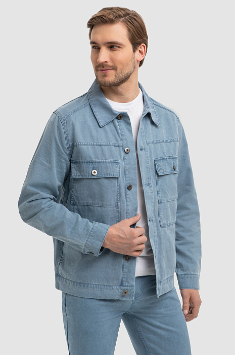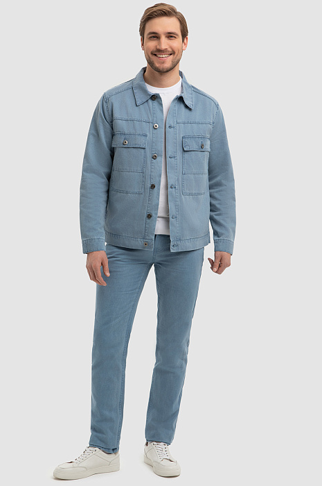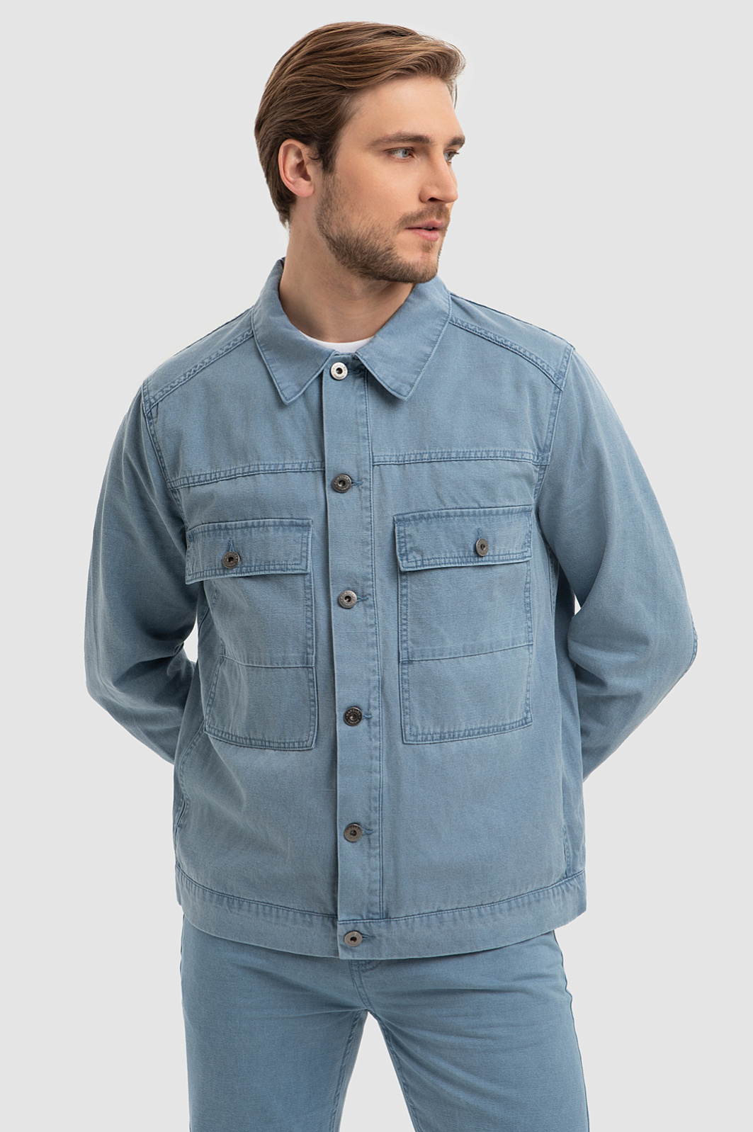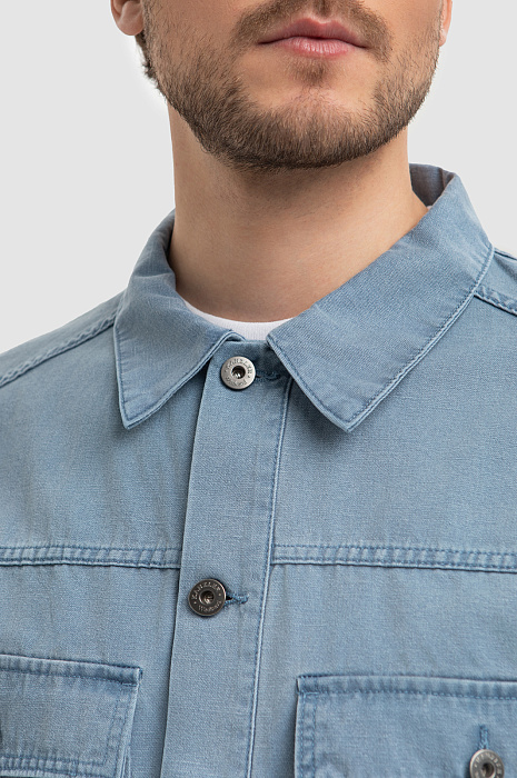 Куртка джинсовая с добавлением льна, цвет голубой, цена 7 990 руб., код 266725 - купить в Самаре в интернет-магазине KANZLER