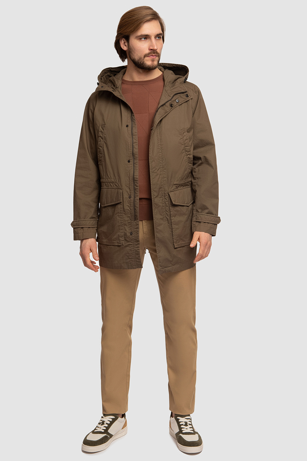 Практичная непромокаемая куртка KANZLER оттенка хаки с функциональными деталями — настоящая находка для межсезонья в городе и прогулок на природе. Надежная застежка-молния прикрыта планкой с кнопками. Свободный силуэт не сковывает движений. Кулиска на поясе позволяет регулировать степень прилегания куртки. Капюшон с утяжкой (эластичный шнур) защищает от дождя и ветра. Карманы — большие нижние с клапанами, нагрудные и внутренние — вмещают все необходимые мелочи. Качественная ткань из чистого хлопка обеспечивает комфорт и воздухообмен, а специальная водоотталкивающая обработка не дает шанса дождю намочить одежду. Параметры модели: рост 187, 100-81-97 Размер на модели: 50
