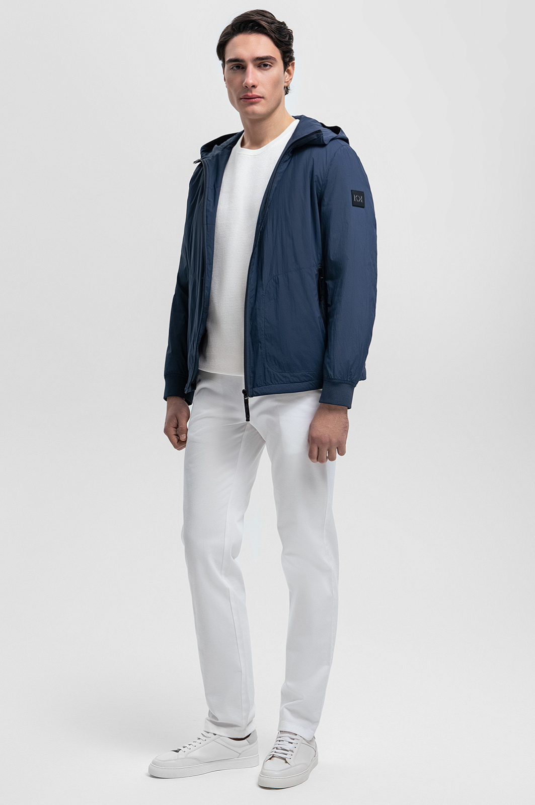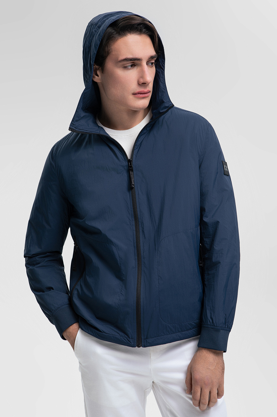 Синяя мужская ветровка с капюшоном — сочетание современного дизайна и высоких технологий. Высокопрочная ткань с водоотталкивающей обработкой защищает от дождя, сохраняя внешний вид безупречным. Наполнитель из 100% полиэстера и подкладка из полиамида подарят ощущение легкости и тепла даже в непредсказуемую погоду. Два боковых кармана удобно разместят повседневные мелочи, а внутренний карман на молнии сохранит ценные вещи в безопасности. Универсальный синий цвет прекрасно вписывается в любой гардероб, делая ветровку идеальной основой множества образов для прогулок, путешествий и активного отдыха на свежем воздухе. Параметры модели: рост 190, 103-83-99 Размер на модели: 50