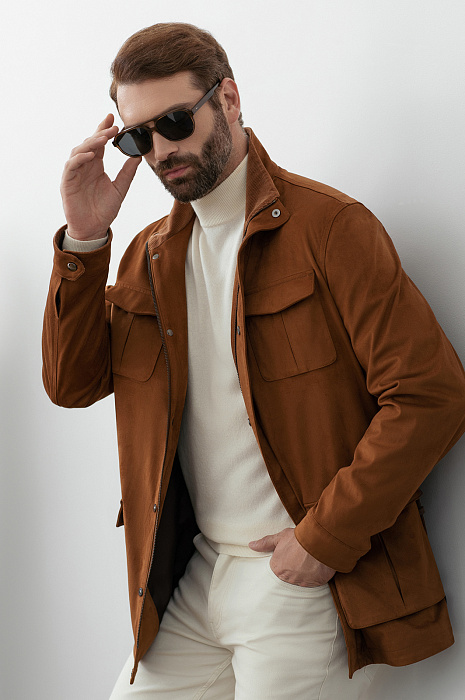 Куртка из алькантары, цвет коричневый, цена 24 990 руб., код 268999 - купить в Самаре в интернет-магазине KANZLER