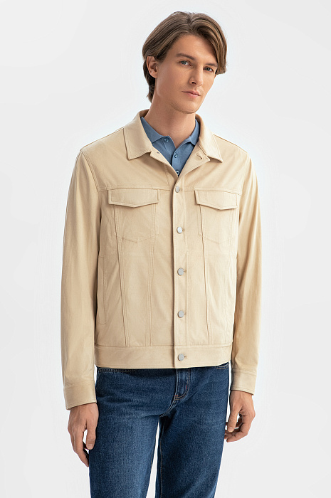 Куртка из алькантары бежевого цвета, цвет бежевый, цена 9 990 руб., код 269000 - купить в Самаре в интернет-магазине KANZLER