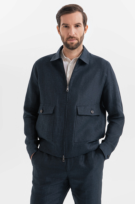 Куртка изо льна, цвет синий, цена 19 992 руб., код 269089 - купить в Самаре в интернет-магазине KANZLER