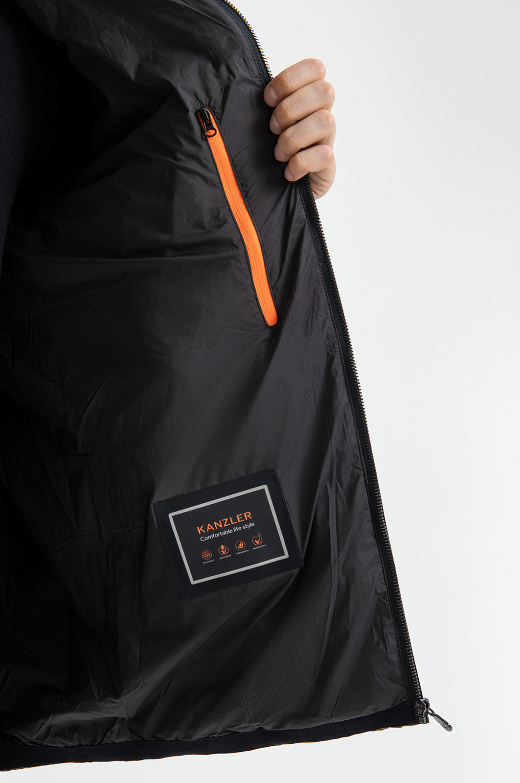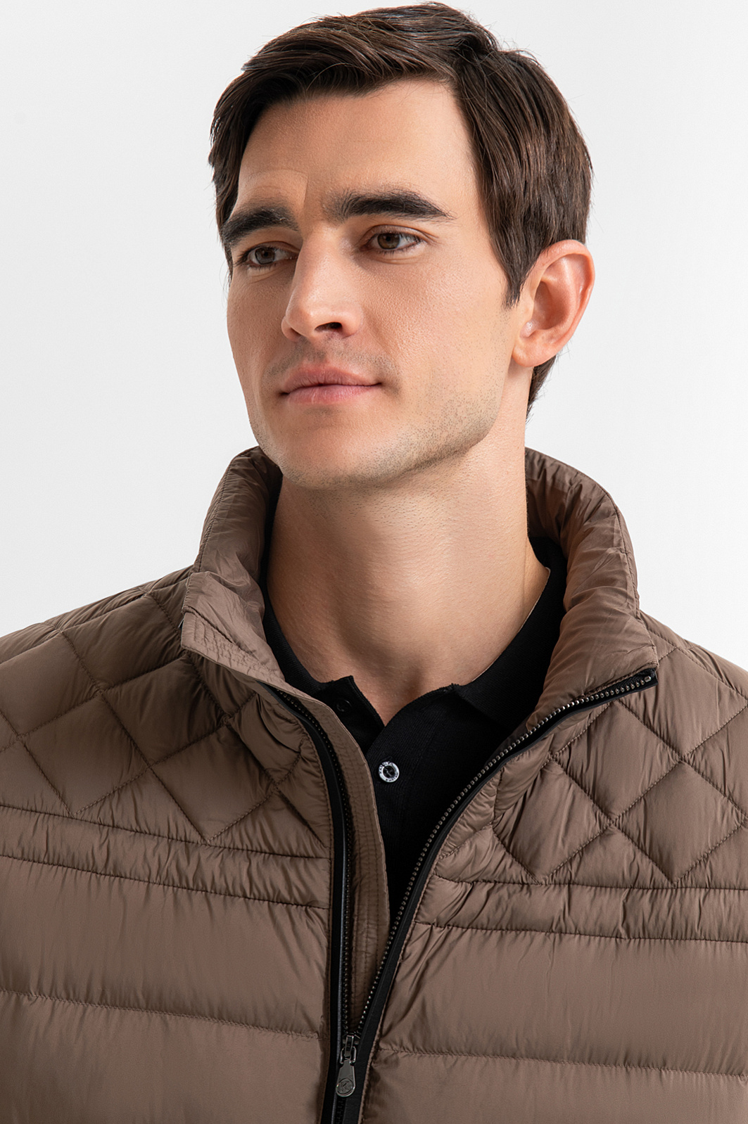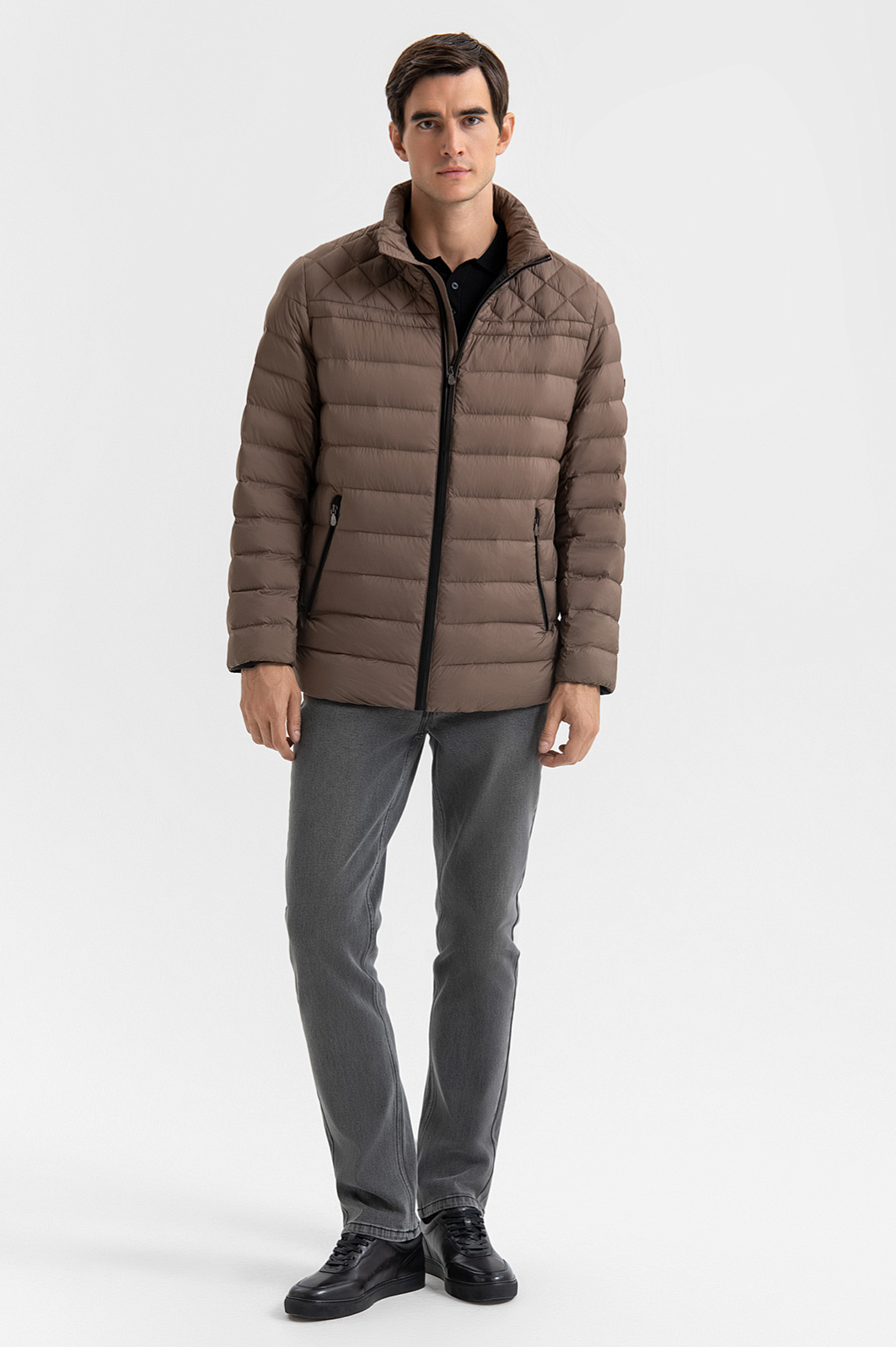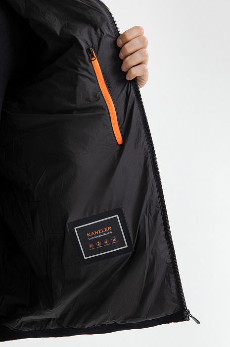 Стильная бежевая стёганая куртка KANZLER гармонично сочетает традиционные и спортивные детали. Верх переда и спинки украшен элегантной ромбовидной стёжкой, которая придает вещи выразительный рельеф и изысканность и контрастирует с основной частью и рукавами, отделанных горизонтальной стёжкой. Воротник-стойка оснащён молнией с карманом, в котором скрыт компактный капюшон — функциональный и практичный элемент на случай переменчивой погоды. Внутренний карман на молнии с ярко-оранжевым кантом — небольшой секрет и акцентная деталь, придающая модели индивидуальность. Внешний материал, утеплитель и подкладка выполнены из прочного, лёгкого и практичного в уходе полиэстера. Водоотталкивающая обработка не позволяет влаге проникать внутрь материала, обеспечивая защиту от дождя и ветра. Параметры модели: рост 192, 101-76-97 Размер на модели: 50