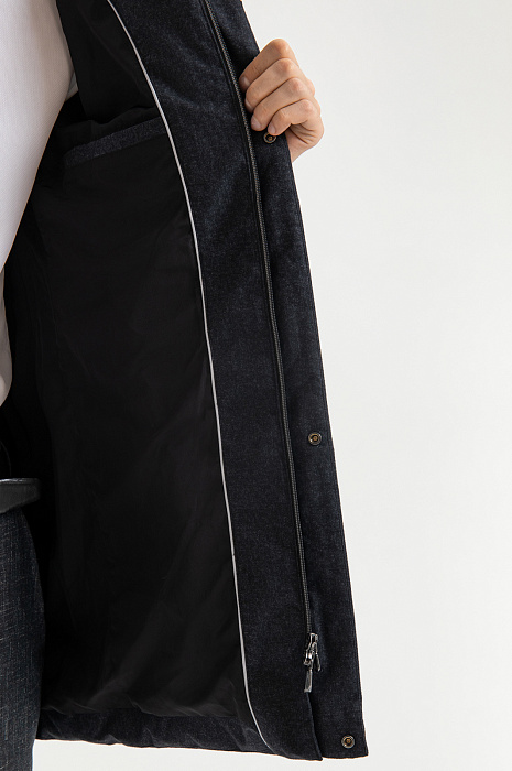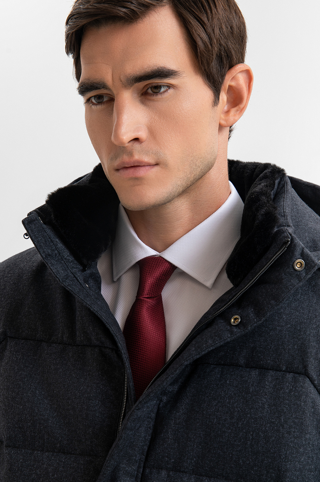 Утепленная стеганая темно-серая куртка KANZLER с капюшоном с лаконичным и собранным силуэтом — идеальный вариант для холодного сезона. Модель отличается чистыми линиями, актуальной минималистичной эстетикой и универсальностью — её легко вписать как в повседневные, так и в более формальные образы. Тёплый капюшон, высокий воротник с уютной пушистой внутренней вставкой и планка с кнопками, прикрывающая застёжку-молнию, надёжно защищают от ветра, дождя и снега. Карманы на молнии обеспечивают удобство и безопасность хранения мелочей. Внешний материал, подкладка и утеплитель выполнены из 100% полиэстера — износостойкого и неприхотливого в уходе. Параметры модели: рост 192, 101-76-97 Размер на модели: 50