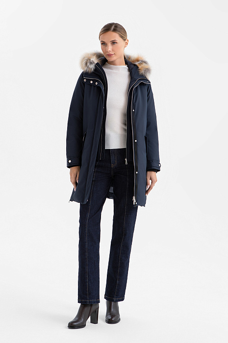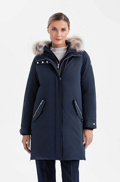 Куртка с отделкой из натурального меха, цвет синий темный, цена 29 990 руб. - купить в интернет-магазине KANZLER