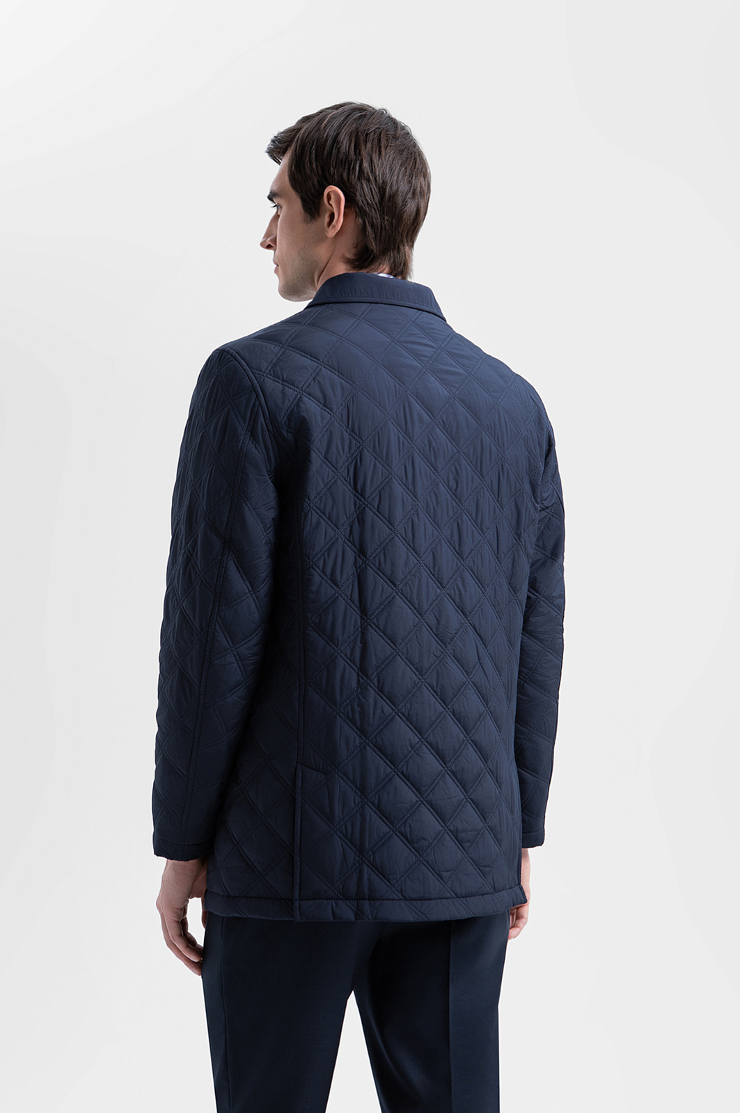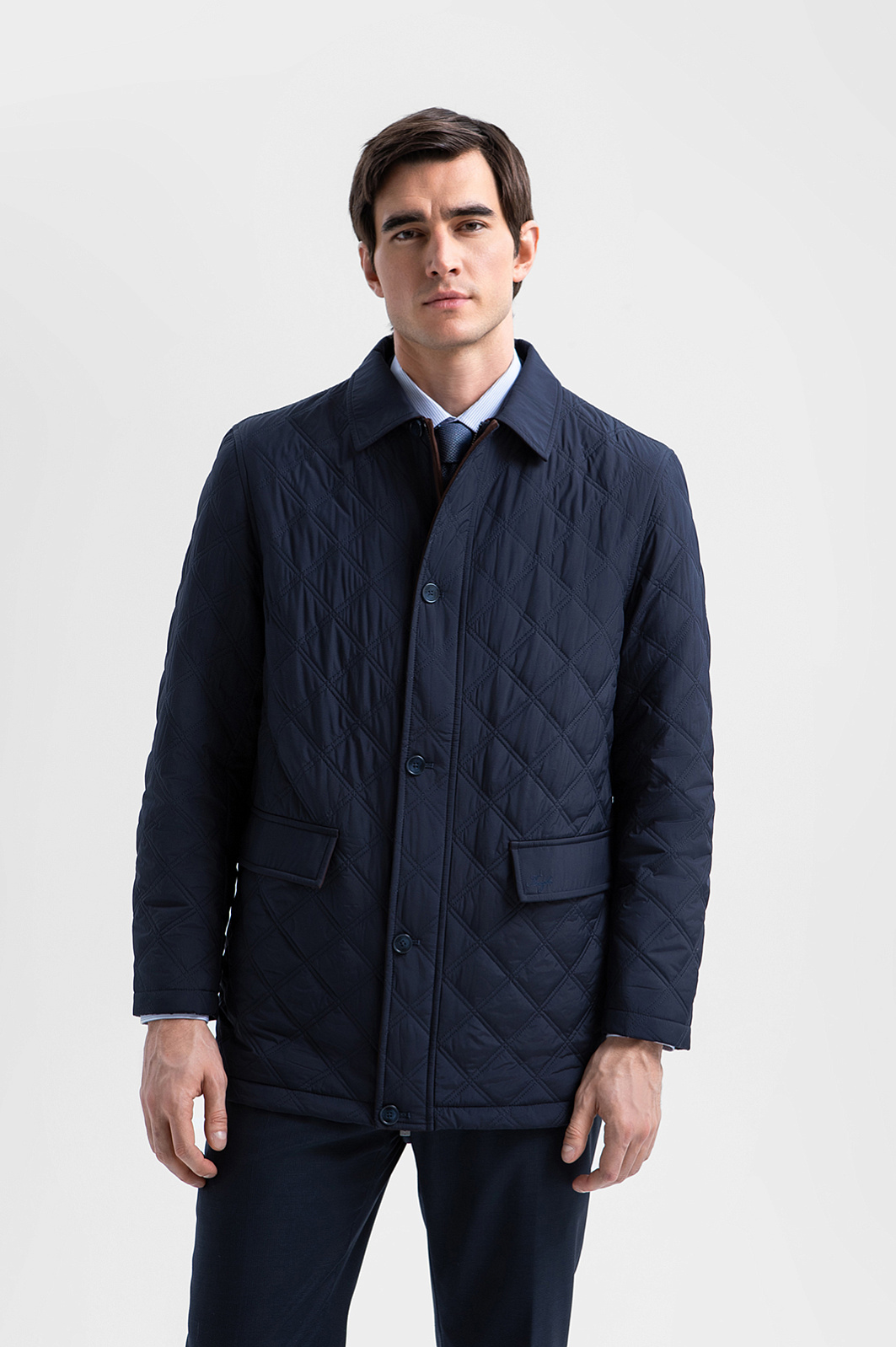 Стёганая куртка KANZLER глубокого синего оттенка — воплощение практичности, функциональности и выверенной эстетики. Спокойная, надёжная и по-настоящему стильная модель подходит для повседневных дел в городе — от встреч до вечерних прогулок. Прямой крой и удобная длина не сковывают движения. Стёганый ромбовидный узор отсылает к классике английского стиля. Коричневый подборт добавляет образу теплоту и благородство, а планка с пуговицами, прикрывающая центральную молнию, — лёгкий ретро-акцент. Материал — долговечная непродуваемая ткань из полиэстера с водоотталкивающей обработкой, которая надёжно защищает от дождя и ветра.