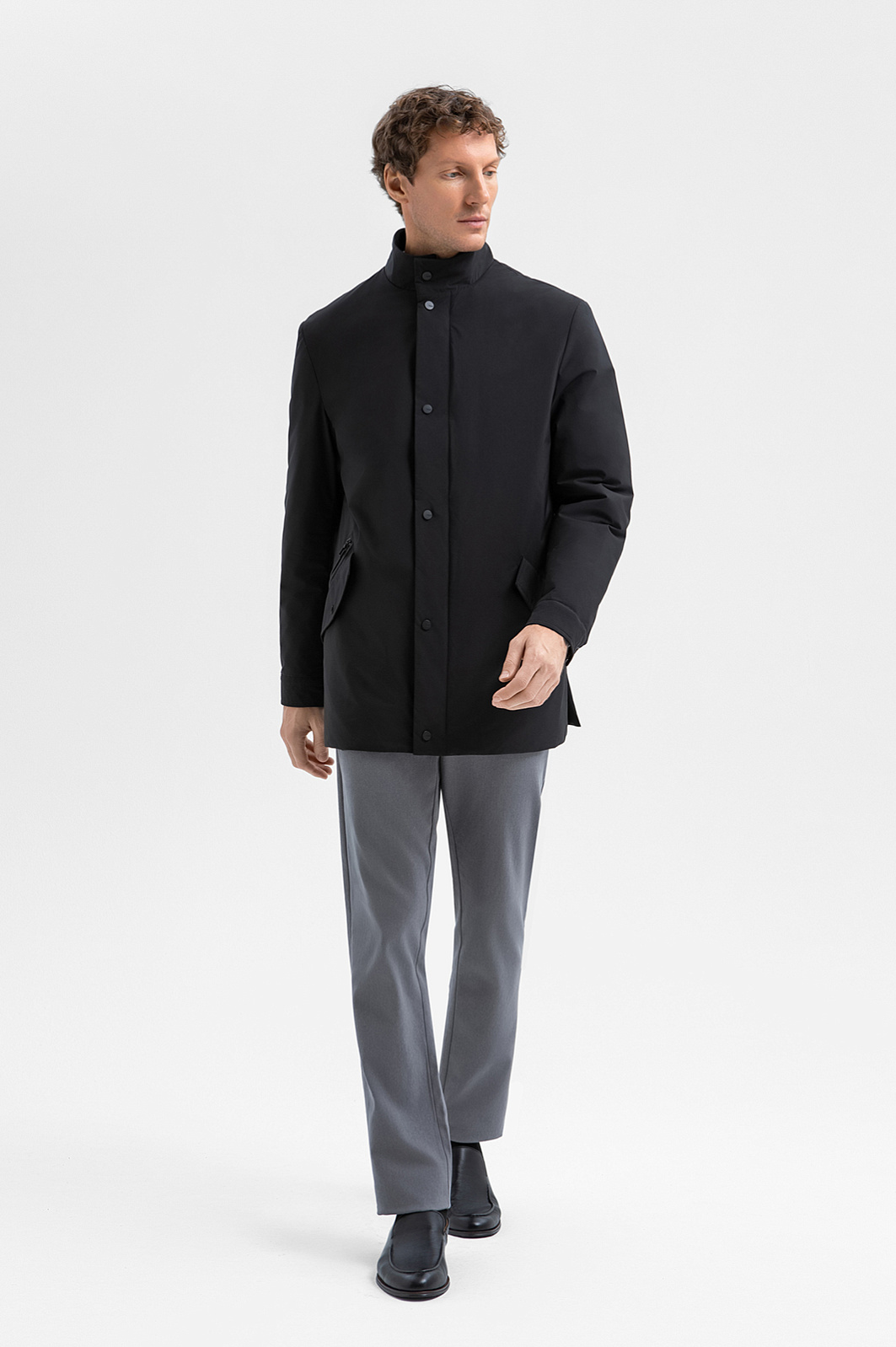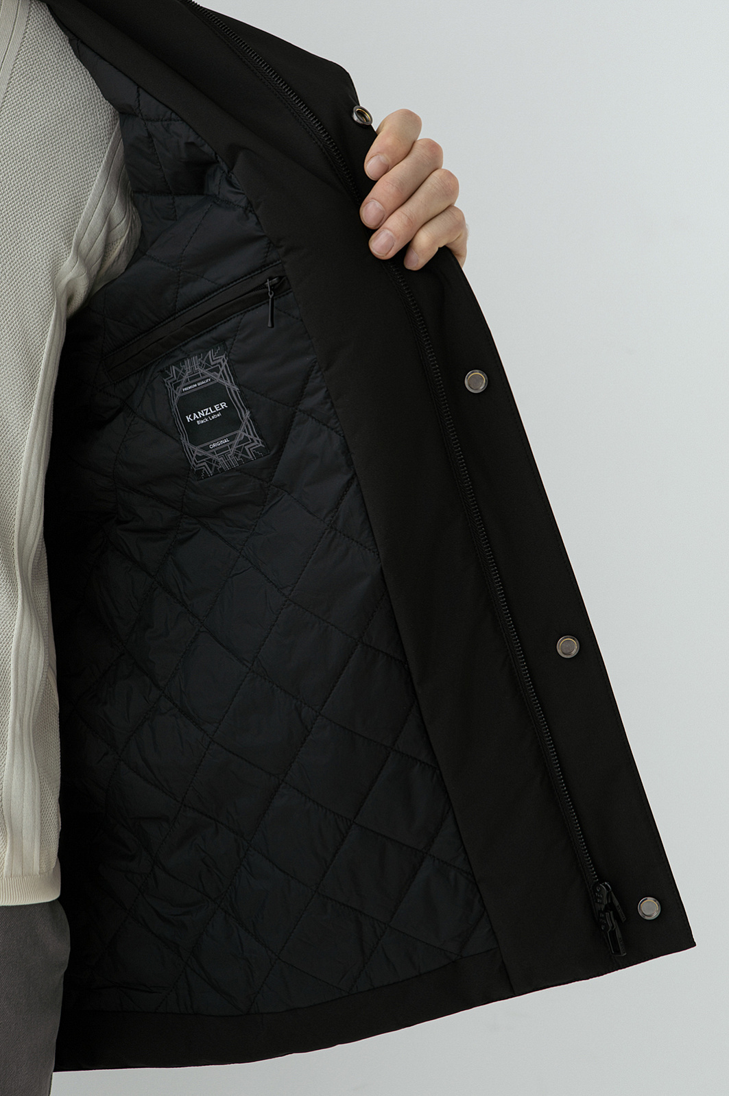 Стильная чёрная куртка KANZLER — воплощение минимализма и функциональности. Модель побуждает двигаться в ритме большого города, с лёгкостью расправляясь с делами. Строгие прямые линии задают лаконичный силуэт. Воротник-стойка, широкая ветрозащитная планка с кнопками и карманы с клапанами, дополненные молнией, работают на функциональность и комфорт, усиливая ощущение чистого современного дизайна. Прочная непродуваемая ткань из полиэстера с водоотталкивающей обработкой позволяет не беспокоиться из-за смены погоды. А стёганая подкладка с наполнителем из полиамида не даст замёрзнуть в холодное межсезонье.
