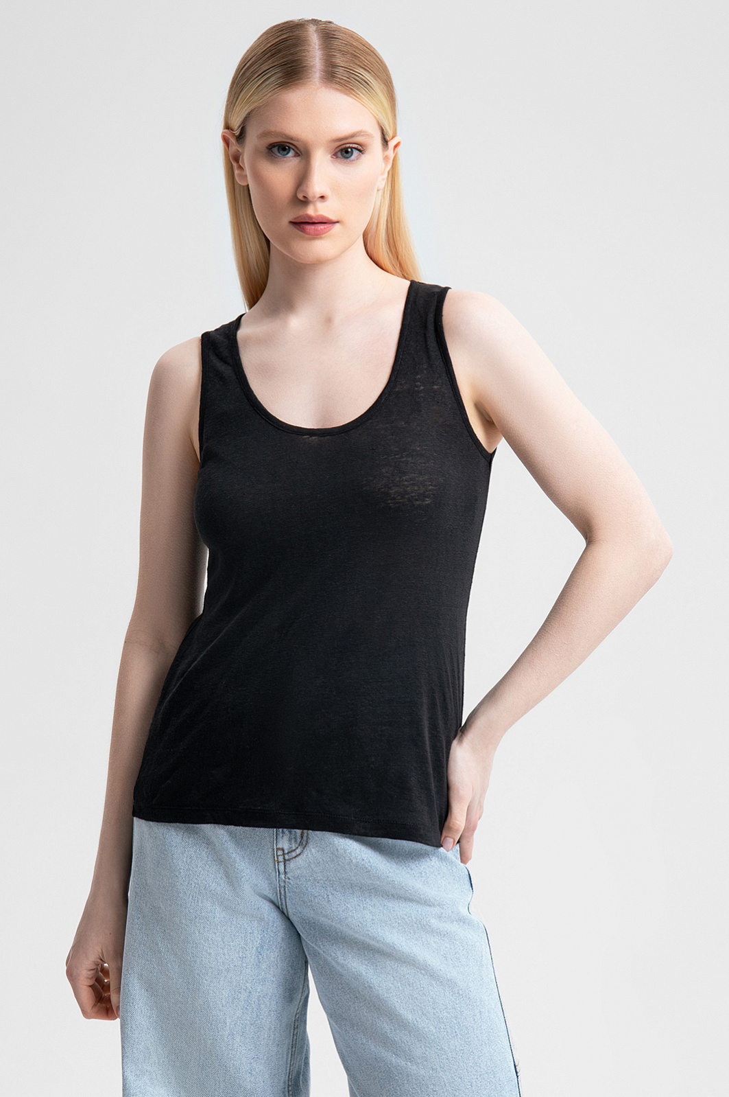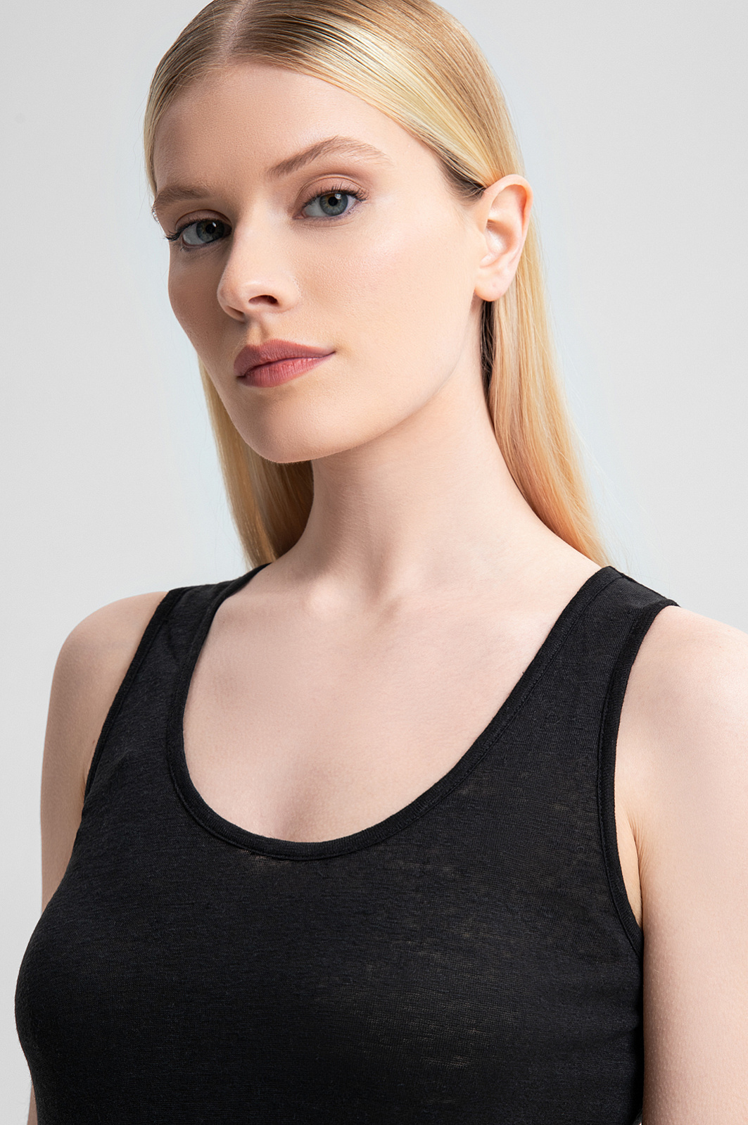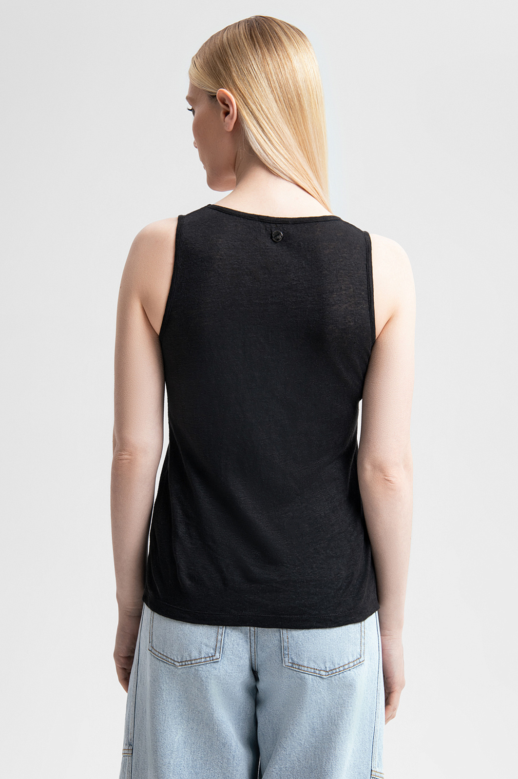 Идеальная посадка, элегантный крой и благородный материал — в топе KANZLER для вашего комфорта продумана каждая деталь. Простой и элегантный дизайн сочетается с высокой функциональностью льна — дышащего и гигроскопичного материала. Лёгкая, невесомая ткань подходит для активного ритма мегаполиса и долгих прогулок в летнюю жару. Прилегающий крой гармонично подчёркивает достоинства фигуры, а круглый вырез акцентирует внимание на линии ключиц. Универсальный чёрный цвет позволяет сочетать майку со множеством элементов гардероба — от классических костюмов до свободных джинсов. Параметры модели: рост 175, 88-65-92 Размер на модели: S