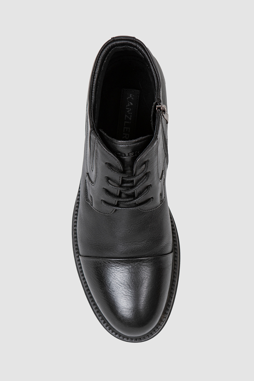 Благодаря сочетанию фактур и тщательно выверенным деталям ботинки KANZLER из натуральной чёрной кожи выглядят достойно, лаконично и выразительно. Идеальный выбор для тех, кто ценит удобство и сдержанный шик, уместный как в деловом, так и в повседневном образе. Традиционный дизайн с округлым носком и отрезным мыском из полированной кожи придает паре элегантность. Боковая молния облегчает надевание, сохраняя чистоту силуэта. Внутренняя подкладка и стелька из мягкой микрофибры обеспечивают стопе комфорт на протяжении всего дня. Гибкая износоустойчивая резиновая подошва придаёт уверенность каждому шагу.
