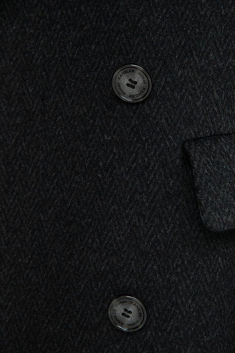 Тёплое двубортное пальто из смесовой шерсти KANZLER безупречного силуэта комфортной длины ниже колена создано для тех, кто ценит стиль и вневременную элегантность. Благородный материал с узором «рыбья кость» (или «ёлочка») смотрится изысканно и респектабельно. Спокойный оттенок серого легко комбинируется с одеждой в классическом и повседневном стилях и подходит как для выходов в офис, так и для прогулок по городу. Традиционные пиджачные детали — умеренно широкие лацканы, карманы с клапанами, нагрудный карман и ряд пуговиц на рукавах — придают образу статусность. Плотная смесовая ткань произведена из натуральных воздухопроницаемых волокон шерсти и хлопка с добавлением полиэстера, который делает ее прочнее и долговечнее.