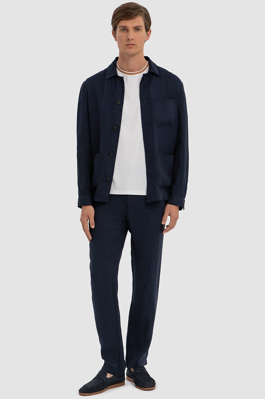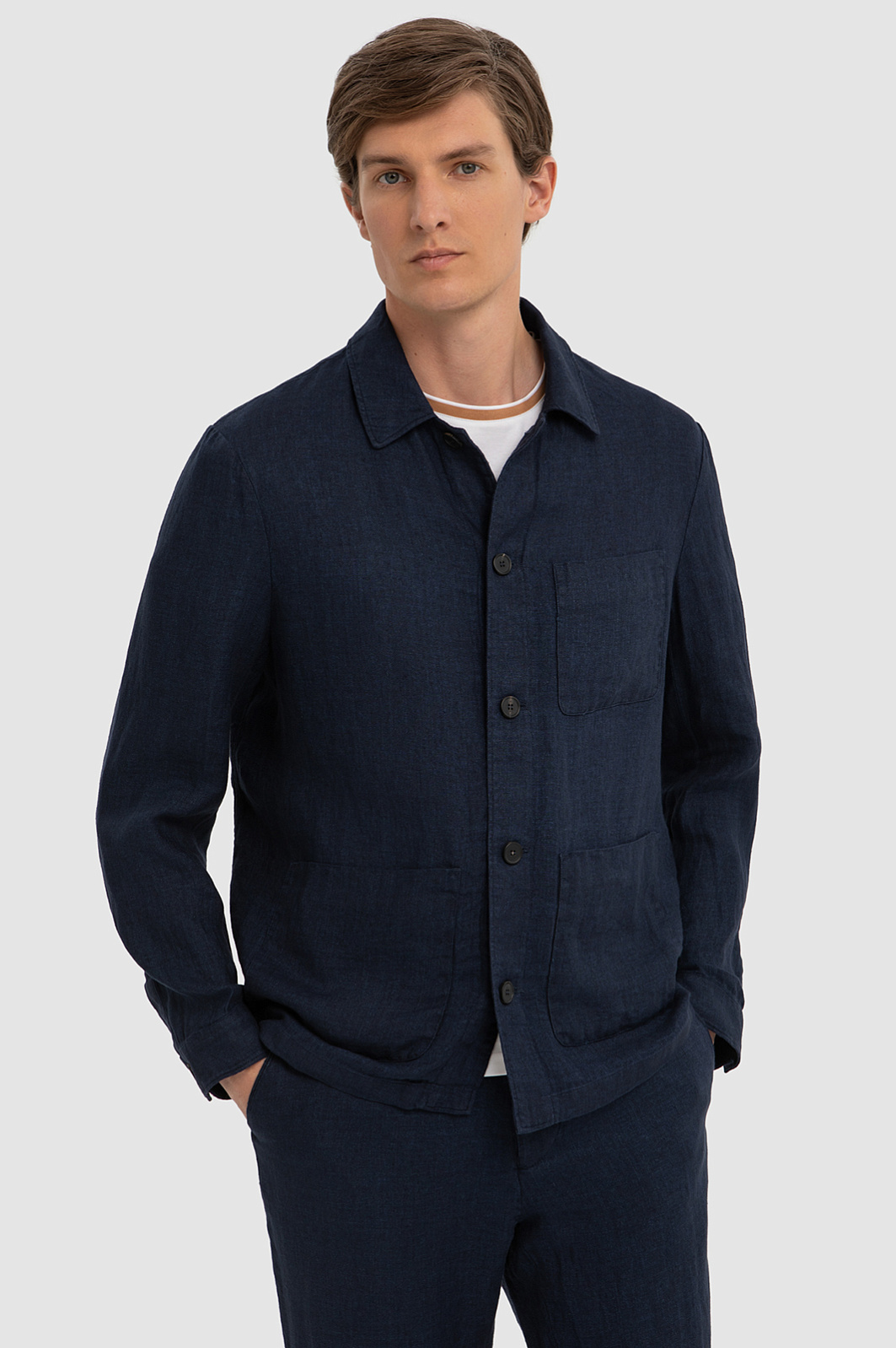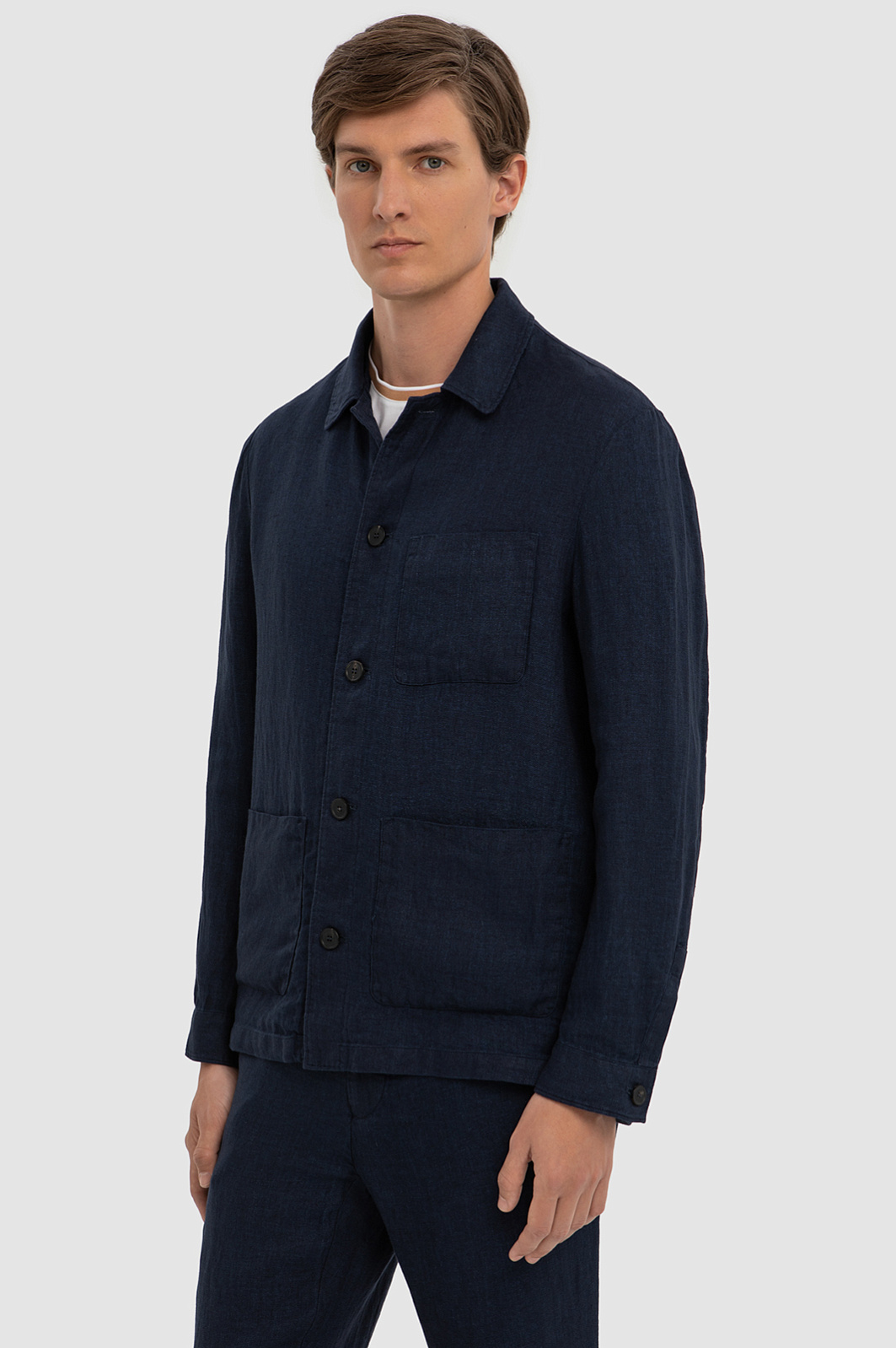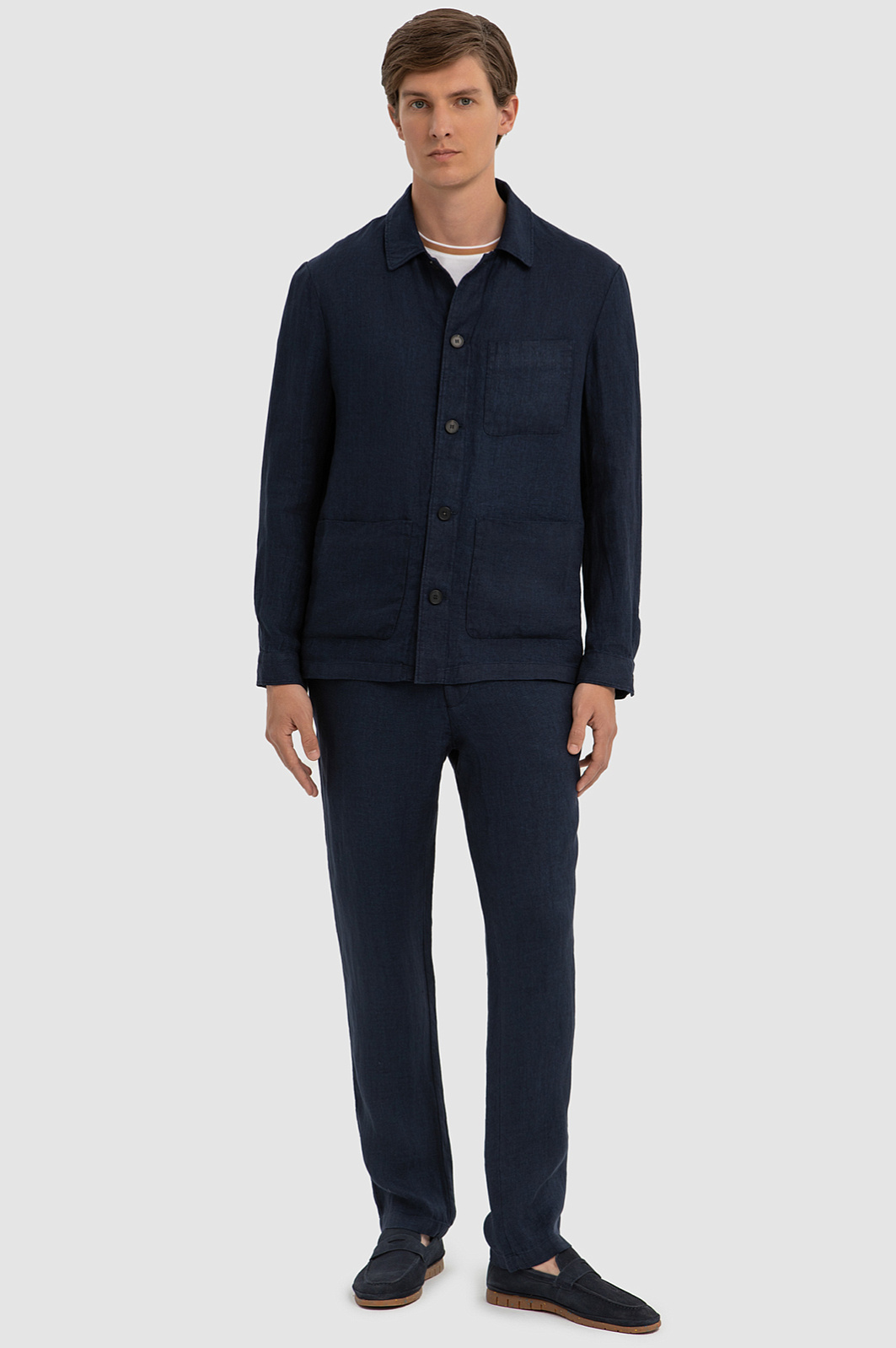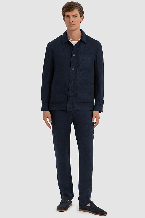 Синий пиджак изо льна и вискозы