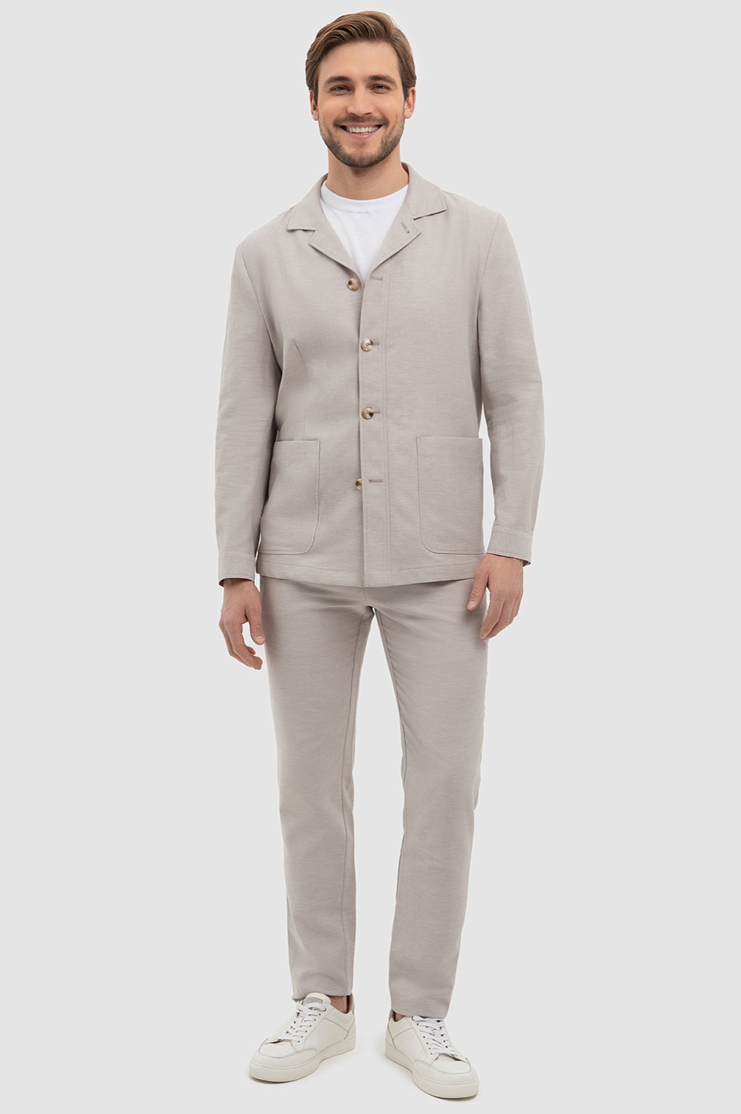 Роскошный светло-бежевый пиджак KANZLER из хлопка и льна с английским воротником, накладными карманами и небольшими боковыми разрезами — союз вневременной элегантности и стиля. Он освежит любой образ, добавив непринужденности и аристократизма. Оригинальность пиджаку придают элементы рубашечного стиля — манжеты и планка с пуговицами. Достаточно просторный Классический крой не сковывает свободу движений. Внутренний накладной карман предназначен для важных мелочей. Тактильно приятная дорогая ткань из хлопка и льна — воплощение гедонизма и комфорта. Хлопковые волокна не препятствуют движению воздуха, сохраняя приятную для тела температуру. Лен придает материалу прочность и легкий благородный отлив. Параметры модели: рост 187, 100-81-97 Размер на модели: 50
