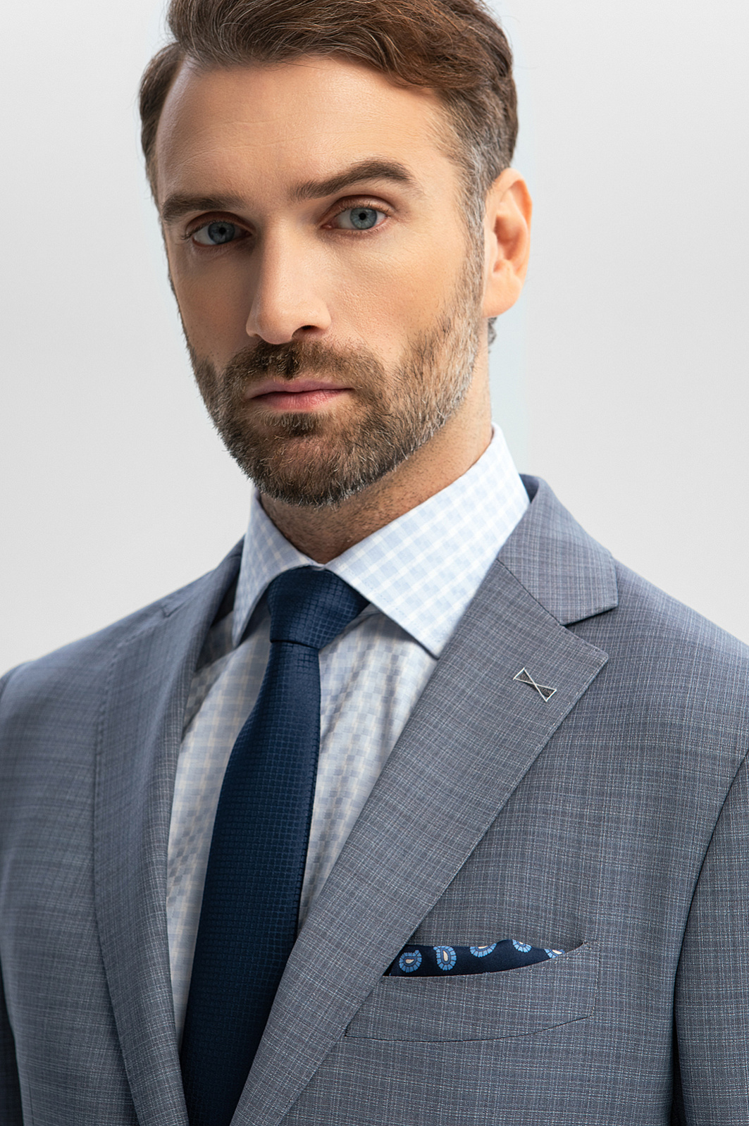 Серый однобортный пиджак KANZLER из устойчивой к сминанию шерсти в мелкую деликатную клетку сделает деловой образ изысканным и светским. Классический крой со слегка зауженным силуэтом, нагрудным карманом с листочкой и естественной линией плеча красиво очерчивает фигуру, подчеркивая достоинства. Вышивка на лацкане служит небольшим стильным акцентом. Благородный дорогой материал из премиальной сертифицированной шерсти Супер 120S (95%) выглядит роскошно. Тонкая овечья шерсть — износоустойчивый долговечный немнущийся материал, который отлично сохраняет тепло и поддерживает комфортную для тела температуру. Эластичные волокна лайкры (5%) защищают ткань от растягивания. Параметры модели: рост 189, 102-80-99 Размер на модели: 50