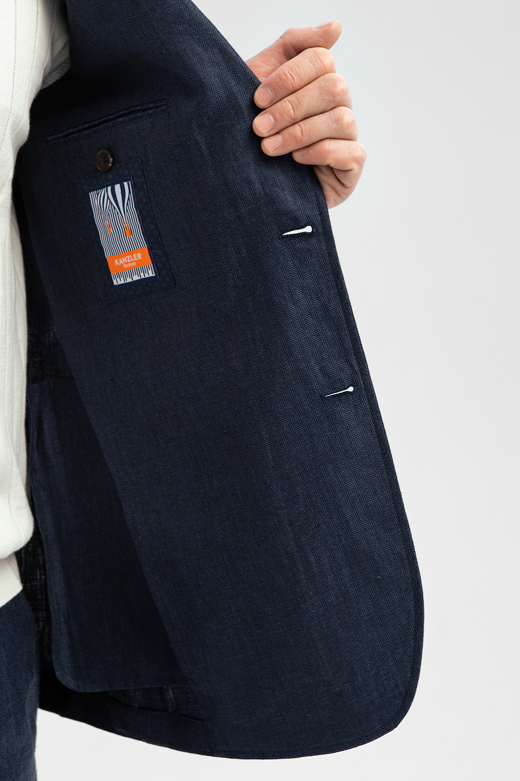 Пиджак KANZLER изо льна оттенка летнего грозового неба поможет оставаться элегантным в теплые дни. В нем можно отправиться в офис или провести приятный летний вечер, привлекая внимание небрежной элегантностью и естественным изяществом. Секрет изысканности — в слегка приталенном силуэте и традиционных деталях: петлице на лацкане, нагрудном кармане с листочкой и нижних карманах с клапаном. Комфорт обеспечивают облегченный крой без подкладки и натуральная гипоаллергенная ткань. Чистый лен — прочнейший износоустойчивый материал. Гладкие волокна хорошо пропускают воздух, отводят влагу и создают ощущение прохлады в жару. Параметры модели: рост 189, 102-80-99 Размер на модели: 50