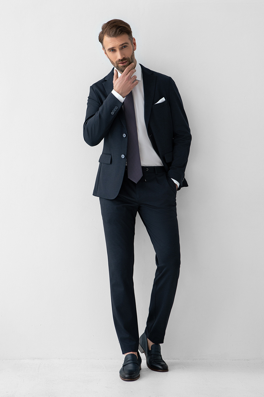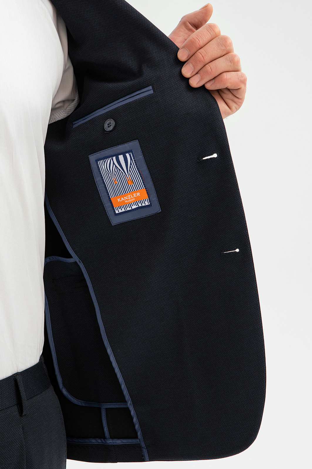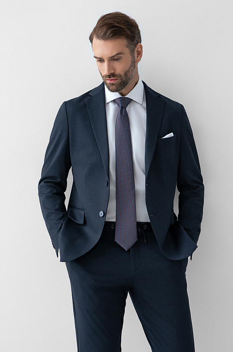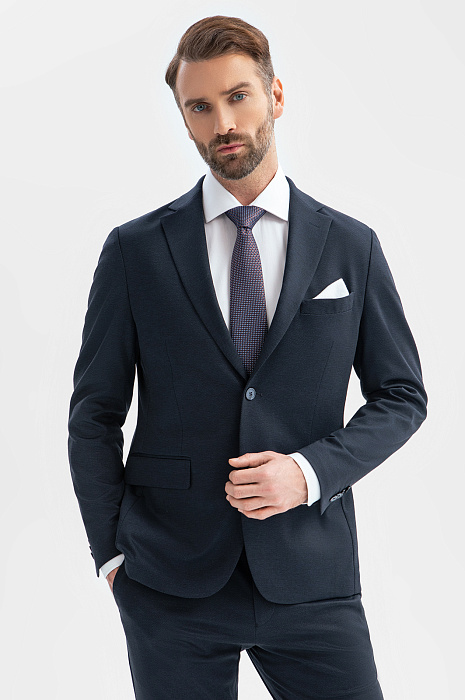 Пиджак однобортный из трикотажной ткани, цвет синий, цена 21 990 руб., код 269098 - купить в Самаре в интернет-магазине KANZLER
