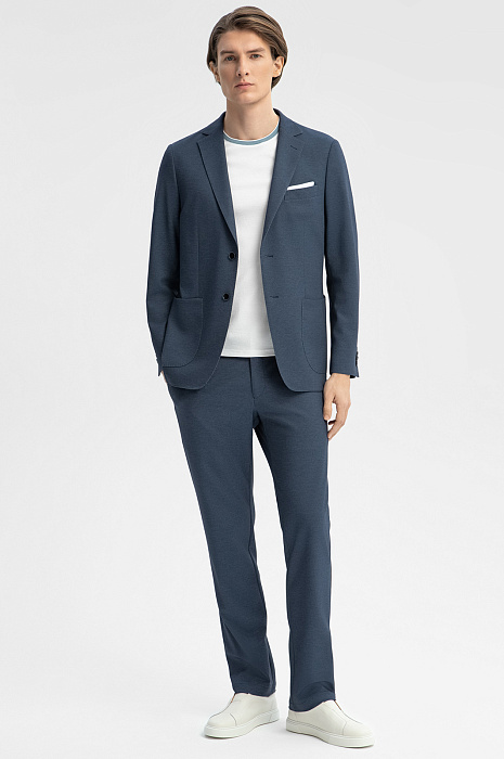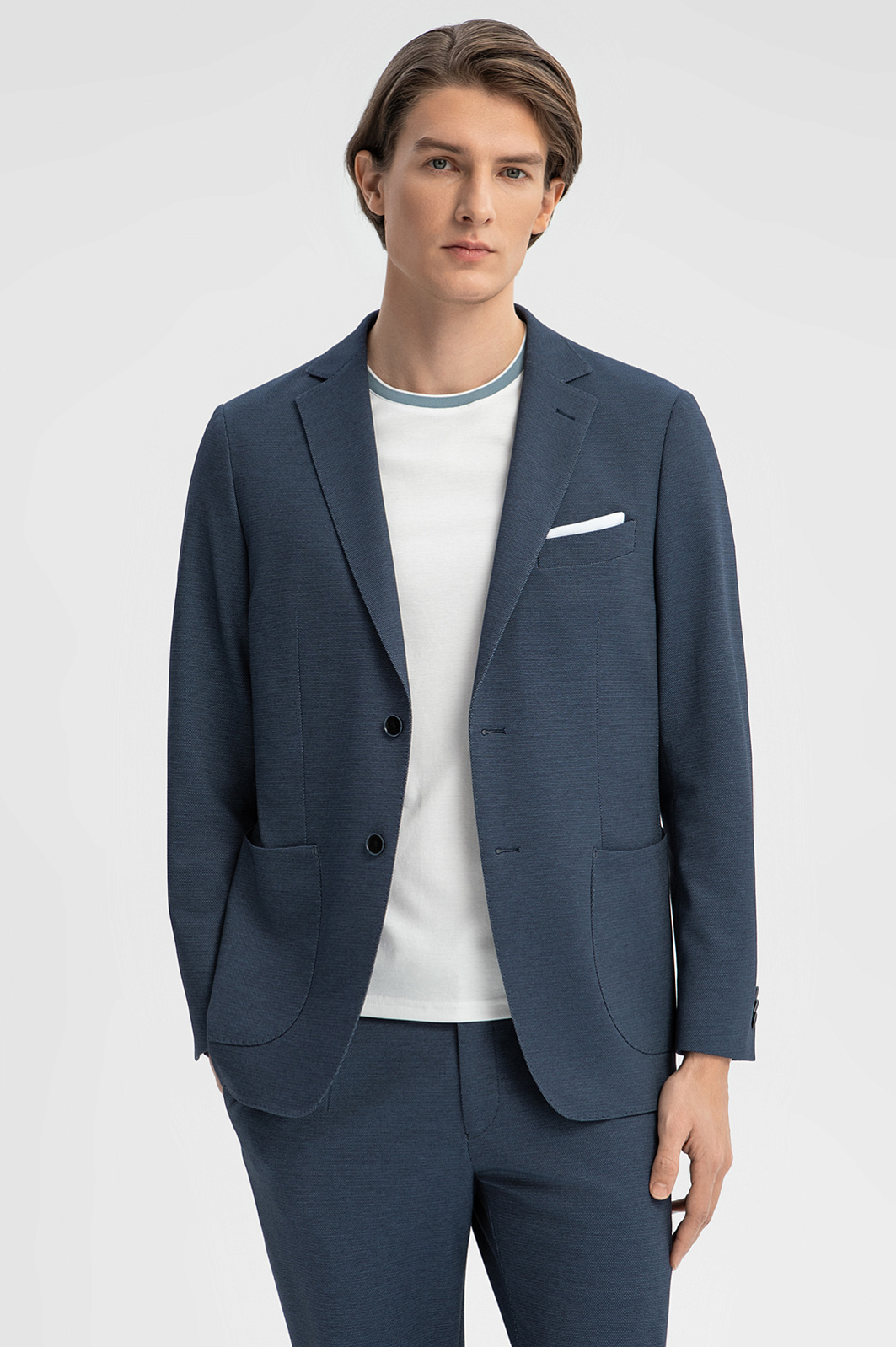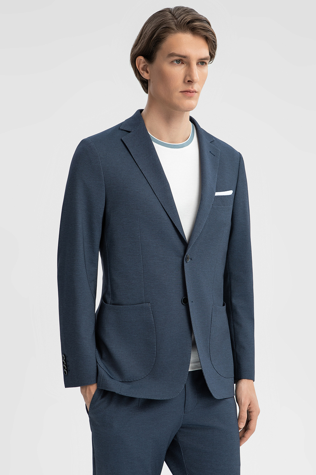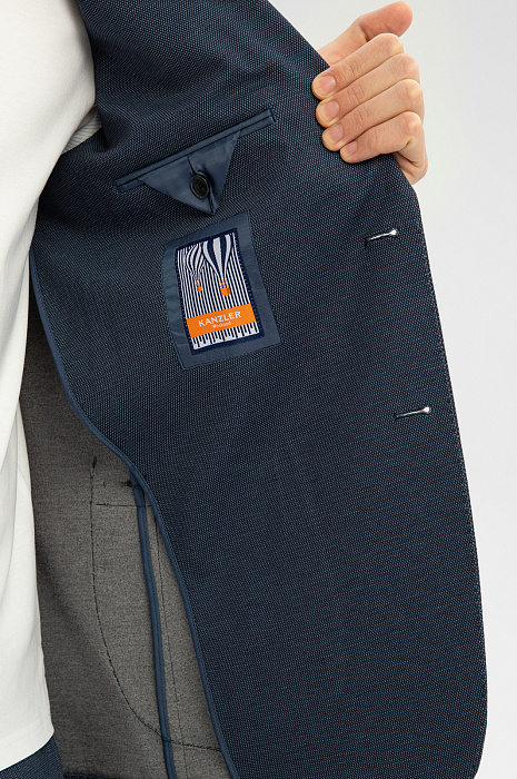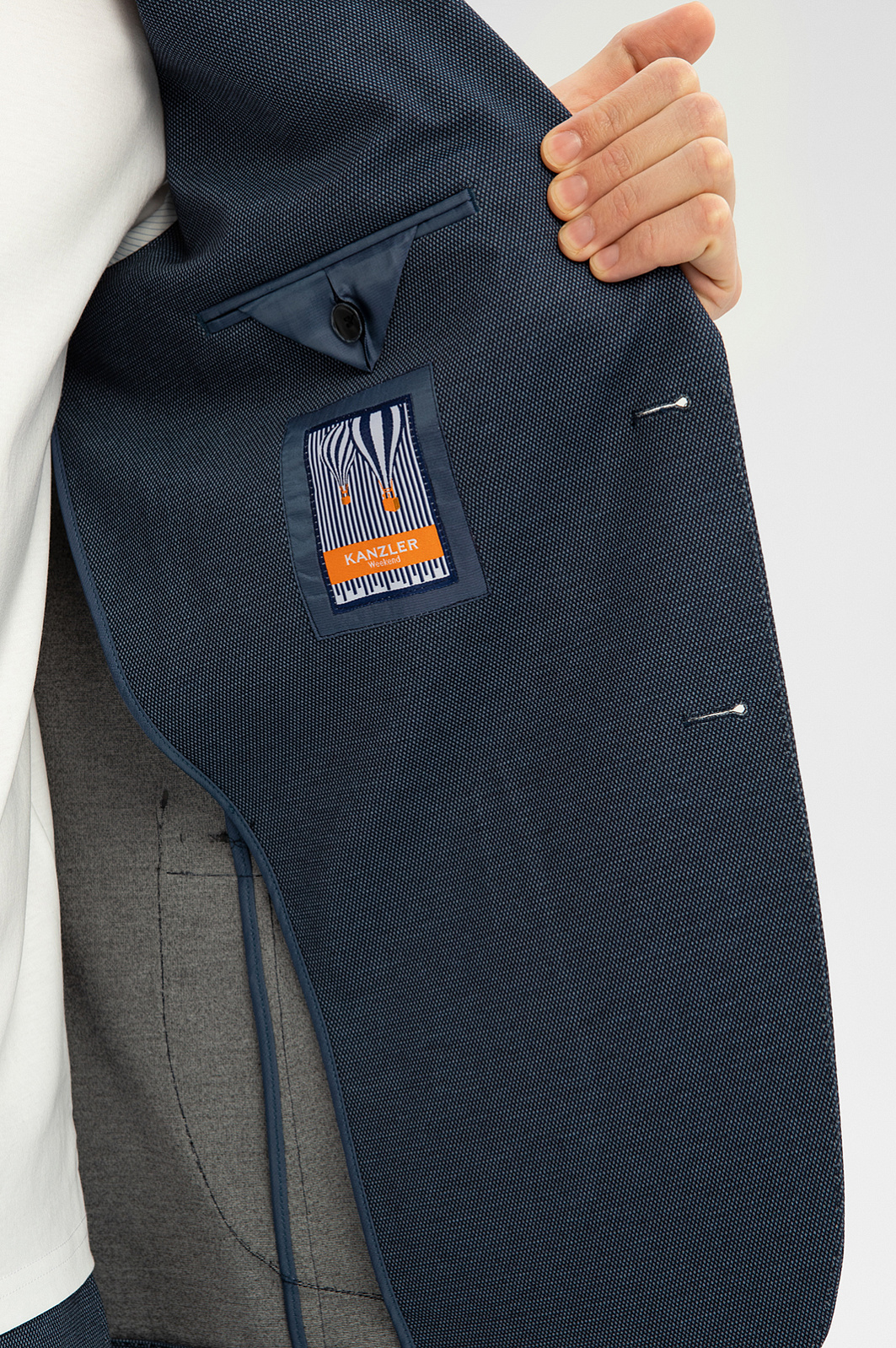Легкий стильный пиджак KANZLER из практичной ткани синего цвета с мелкозернистым рисунком — удобный и практичный вариант для офиса. Ткань мягко облегает тело. Приталенный крой с накладными карманами придает фигуре легкость, подчеркивает мужественную линию плеч и талию. Во вместительном внутреннем кармане можно разместить документы и карточки. Технологичная ткань пиджака отличается непревзойденной долговечностью и износоустойчивостью. Она создана из прочного полиэстера, легкой и приятной на ощупь вискозы и эластичного спандекса, который поддерживает аккуратный вид пиджака. Для составления костюма-двойки, пиджак можно дополнить удобными офисными брюками на кулиске из этой же ткани.