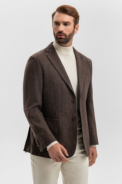 Пиджак из хлопка и шерсти с узором шеврон, цвет коричневый, цена 26 990 руб., код 270001 - купить в Самаре в интернет-магазине KANZLER