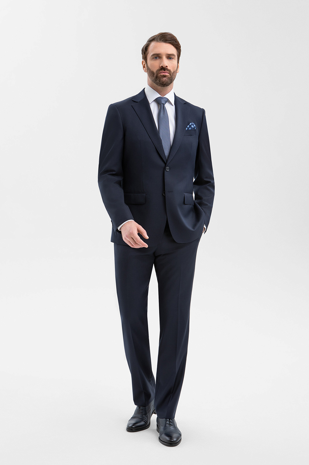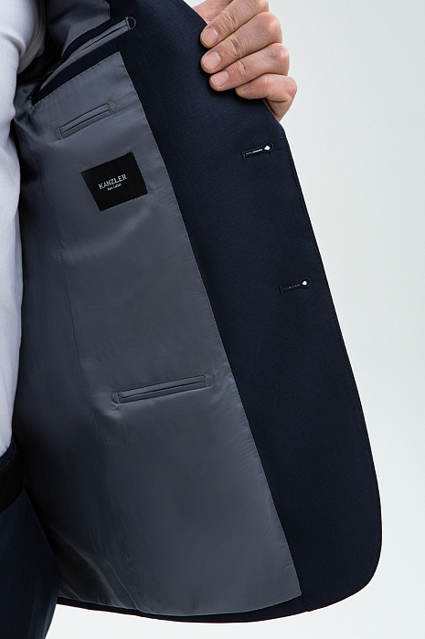 Классический однобортный тёмно-синий пиджак KANZLER достаточно формален — его можно надеть на официальное мероприятие, и при этом вполне наряден — подходит для светского раута или торжества. Современный слегка зауженный крой сочетается с традиционными деталями — нагрудным карманом, клапанами на нижних карманах, двумя шлицами сзади и портновской строчкой по краю лацканов. Мягкое "неаполитанское" плечо повторяет естественные линии тела. В составе качественной смесовой ткани — нежная гипоаллергенная шерсть мериноса, которая поддерживает свежесть и приятную для тела температуру, и прочный полиэстер, делающий материал устойчивым к сминанию и износу.