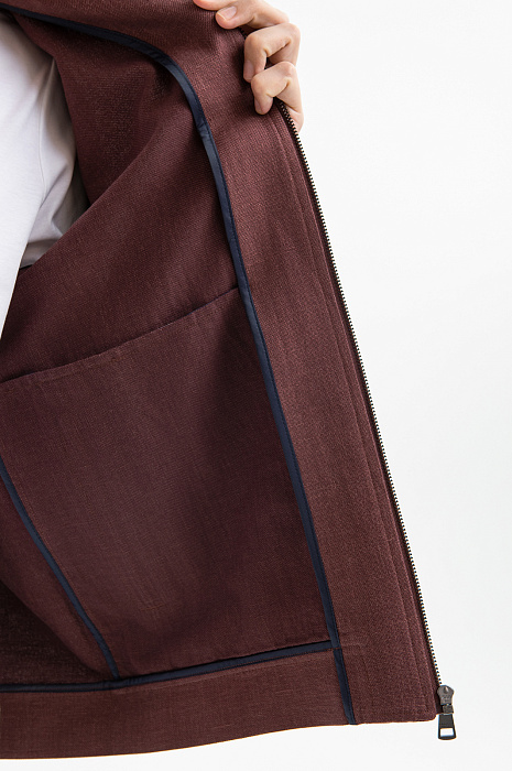Коричневый пиджак KANZLER из хлопка и льна без воротника на молнии напоминает лёгкую куртку для тёплых дней. Идеальный выбор для прогулки в парке, неформальной встречи или свидания. Прямой свободный крой, в котором креативно сочетаются элементы куртки, пиджака и рубашки, формирует современный минималистичный силуэт. Оттенок молочного шоколада и естественная фактура материала придают образу мягкость. Смесовая ткань из натуральных волокон — гипоаллергенный воздухопроницаемый материал. Хлопок поддерживает оптимальный микроклимат. Лён укрепляет полотно и придаёт структурность.