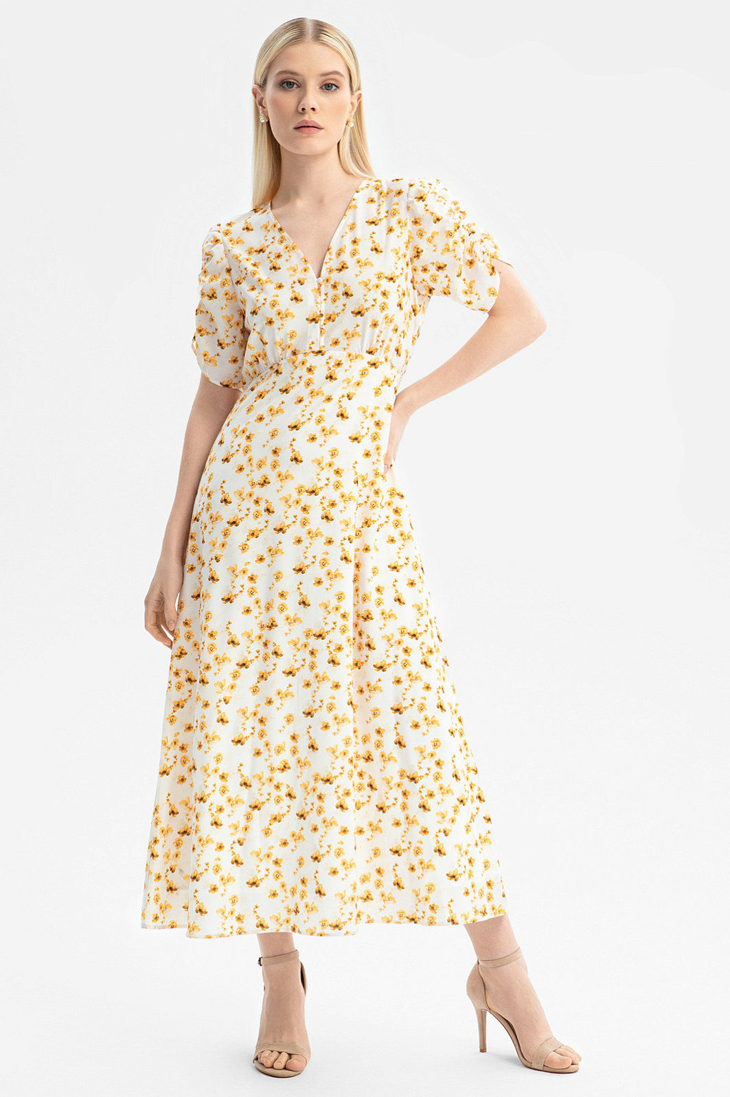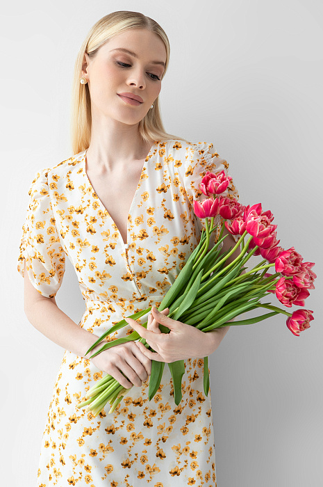 Платье-миди с цветочным узором, цвет белый, цена 6 990 руб. - купить в интернет-магазине KANZLER