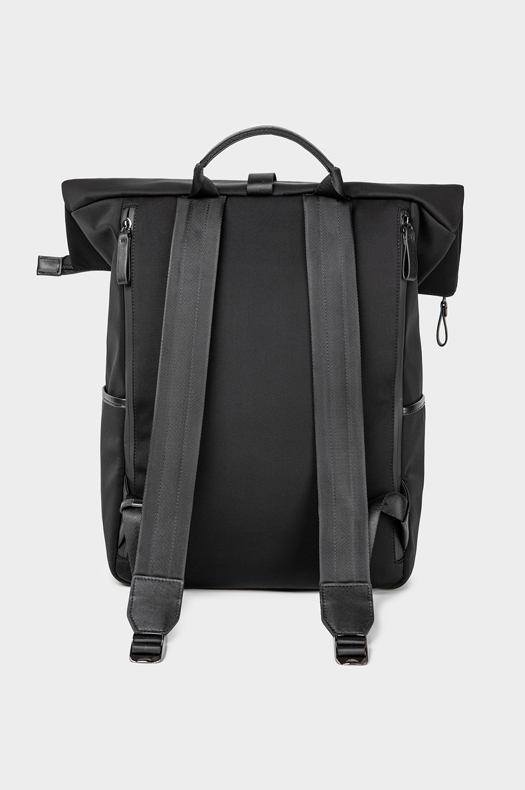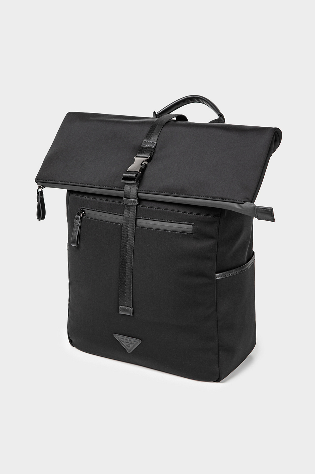 Легкий черный рюкзак KANZLER из нейлона с кожаной отделкой в духе эстетики минимализма и хайтек, навеянной эстетикой Сеула — города передовых технологий и культурного разнообразия. Застежка-молния и дополнительный ремень с пряжкой усиливают защиту содержимого и придают рюкзаку урбанистический вид. Внутри — скрытые отделения для гаджетов, кабелей, документов, снаружи — плоские аккуратные карманы. С помощью ручки и широких регулируемых лямок рюкзак можно носить в руке или на спине.
