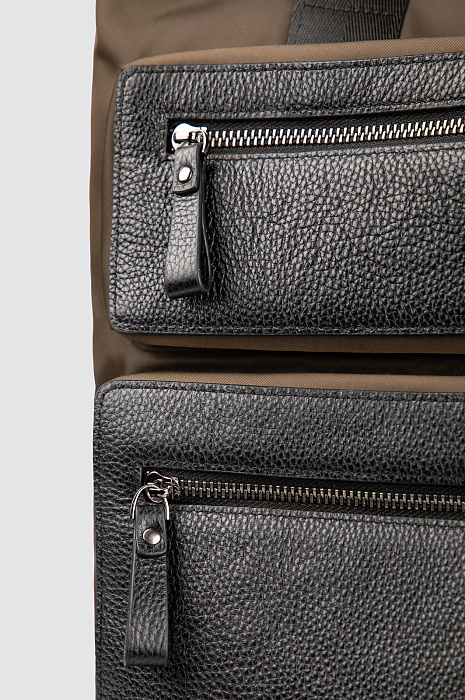 Рюкзак из натуральной кожи и текстиля, цвет хаки, цена 17 990 руб., код 270855 - купить в Самаре в интернет-магазине KANZLER