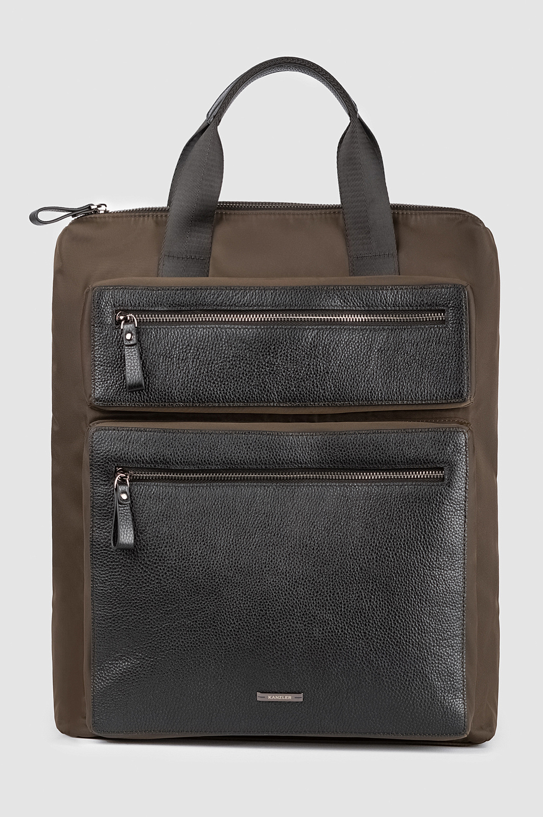 Стильный городской рюкзак KANZLER из натуральной кожи и текстиля — продуманное сочетание функциональности и современной эстетики. Благородный тёмно-оливковый оттенок гармонично вписывается в деловой и кежуал гардероб, делая аксессуар универсальным выбором для повседневных маршрутов и поездок. Внутреннее отделение рассчитано на безопасное размещение ноутбука и позволяет организовать раздельное хранение рабочих принадлежностей и личных вещей. Удобные ручки и широкие эргономичные лямки позволяют носить рюкзак в руке или на плечах. Текстиль обеспечивает лёгкость, практичность и износоустойчивость рюкзака. Внешние карманы с надёжными молниями увеличивают вместимость и придают рюкзаку выразительный городской характер.