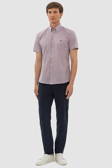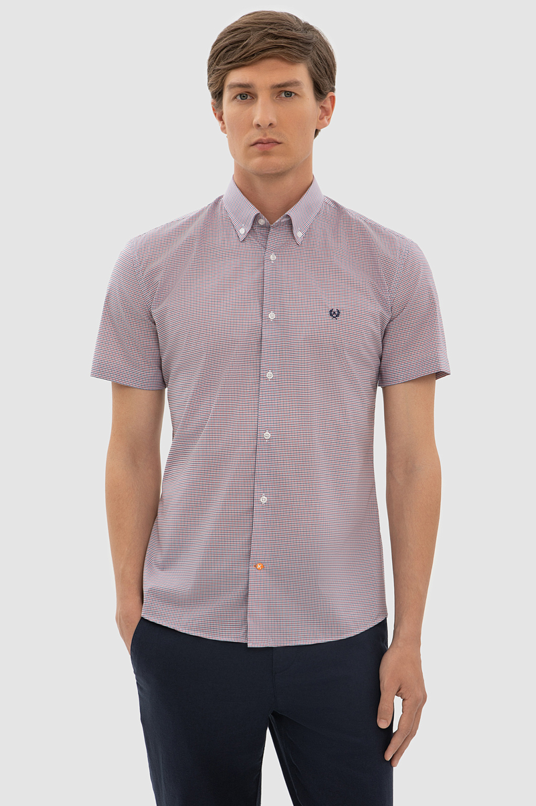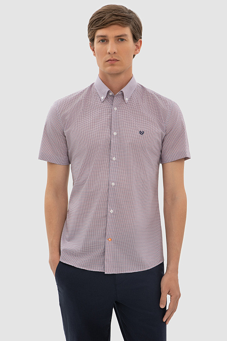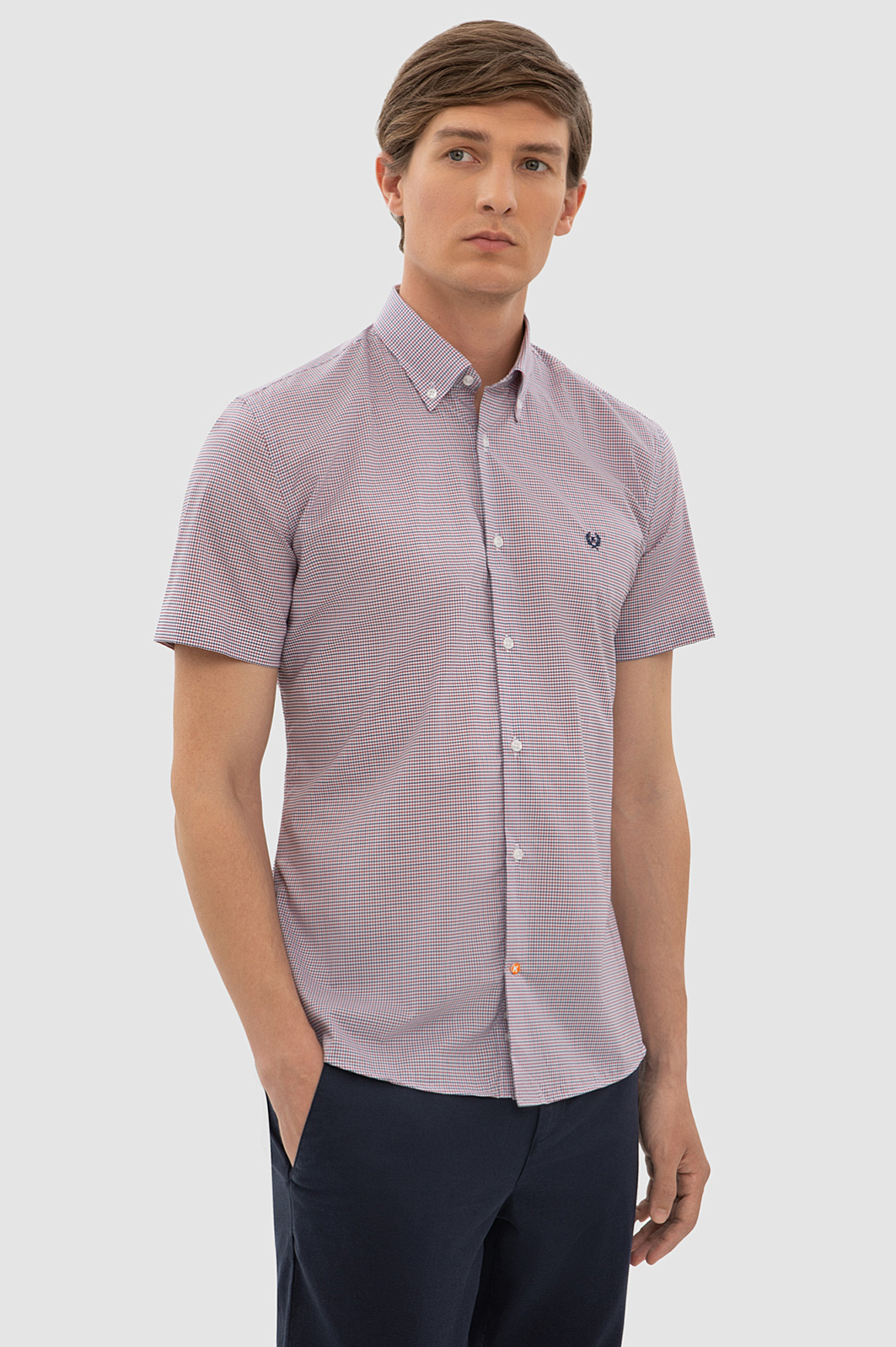 Сорочка с коротким рукавом из итальянской хлопковой ткани Monti, цвет красный, цена 3 990 руб., код 267320 - купить в Самаре в интернет-магазине KANZLER