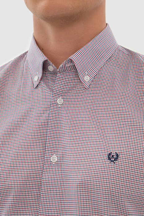 На создание хлопковой сорочки KANZLER с коротким рукавом в мелкую клетку с небольшим вышитым логотипом на груди дизайнеров вдохновил буржуазный стиль американского университета в Принстоне. Его студенты и преподаватели питают страсть к рубашкам в мелкую клетку с аккуратным воротником, уголки которого прижаты пуговицами. Приталенный силуэт подчеркивает достоинства фигуры, а небольшая акцентная пуговичка на планке добавляет облику нотку бунтарства и оригинальности. По-настоящему роскошной сорочку делает итальянская ткань Monti из чистого хлопка в сине-красную клетку. Мягкий, но прочный и практичный материал отличается долговечностью. Гипоаллергенные натуральные волокна призваны заботиться о комфорте тела, создавая оптимальную температуру. Параметры модели: рост 191, 97-77-99 Размер на модели: 40
