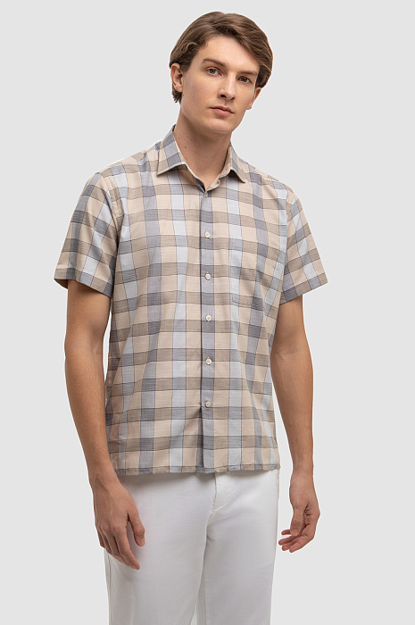 Сорочка с коротким рукавом из австрийской хлопковой ткани Getzner, лимитированная коллекция, цвет бежевый, цена 4 990 руб., код 267329 - купить в Самаре в интернет-магазине KANZLER