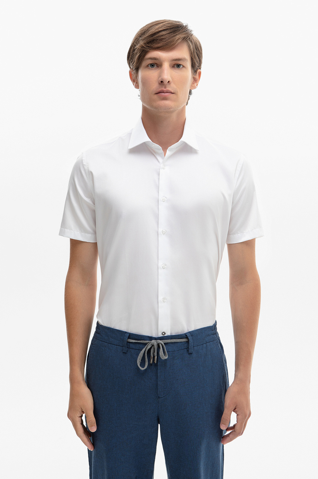 Белая хлопковая сорочка с коротким рукавом, легкая в уходе, цвет белый, цена 6 990 руб., код 267497 - купить в Самаре в интернет-магазине KANZLER