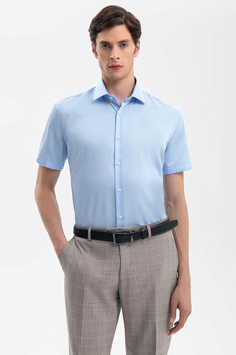 Сорочка с коротким рукавом из хлопка, устойчивая к сминанию, цвет голубой, цена 6 990 руб., код 269349 - купить в Самаре в интернет-магазине KANZLER