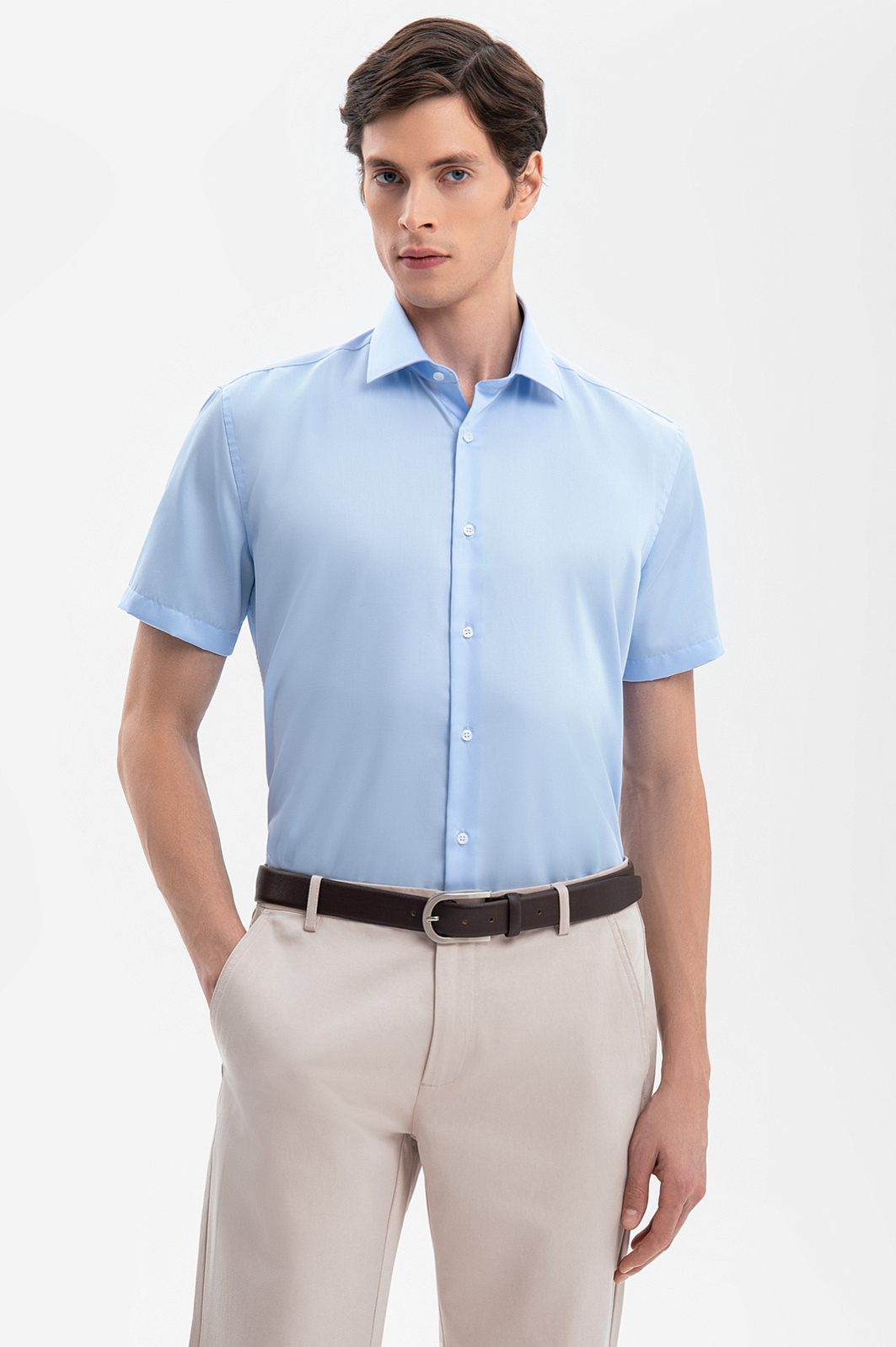 Сорочка с коротким рукавом из хлопка, устойчивая к сминанию, цвет голубой, цена 6 990 руб., код 269350 - купить в Самаре в интернет-магазине KANZLER