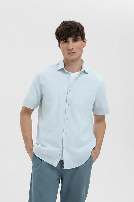 Сорочка с коротким рукавом изо льна и хлопка, цвет зеленый, цена 8 990 руб., код 271588 - купить в Самаре в интернет-магазине KANZLER