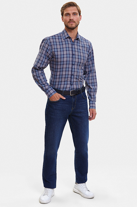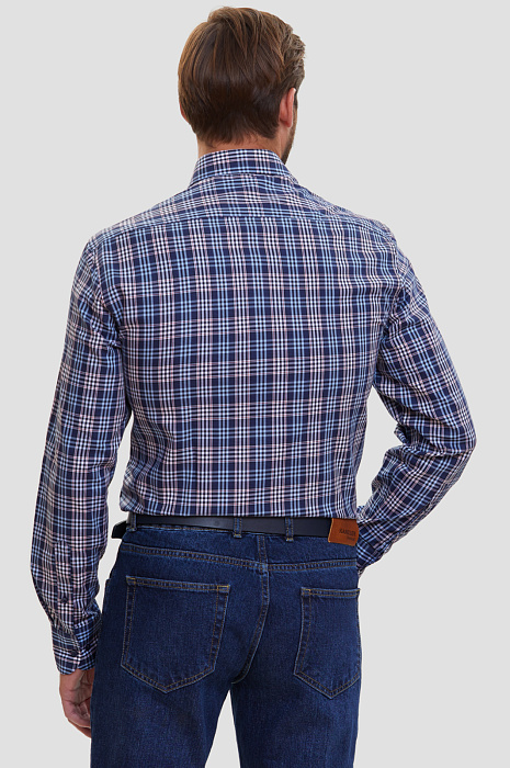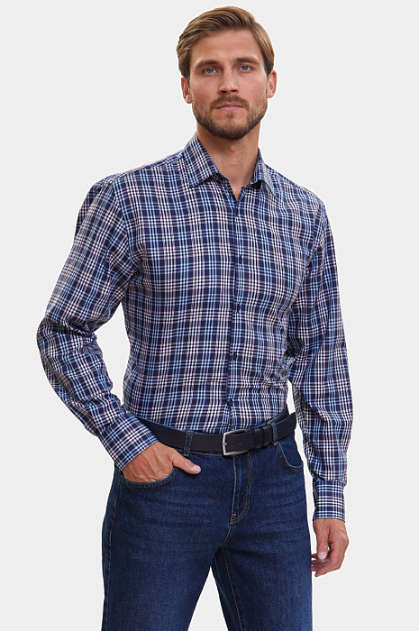 Сорочка свободного прилегания из хлопка в клетку, цвет синий, цена 4 990 руб., код 266501 - купить в Самаре в интернет-магазине KANZLER