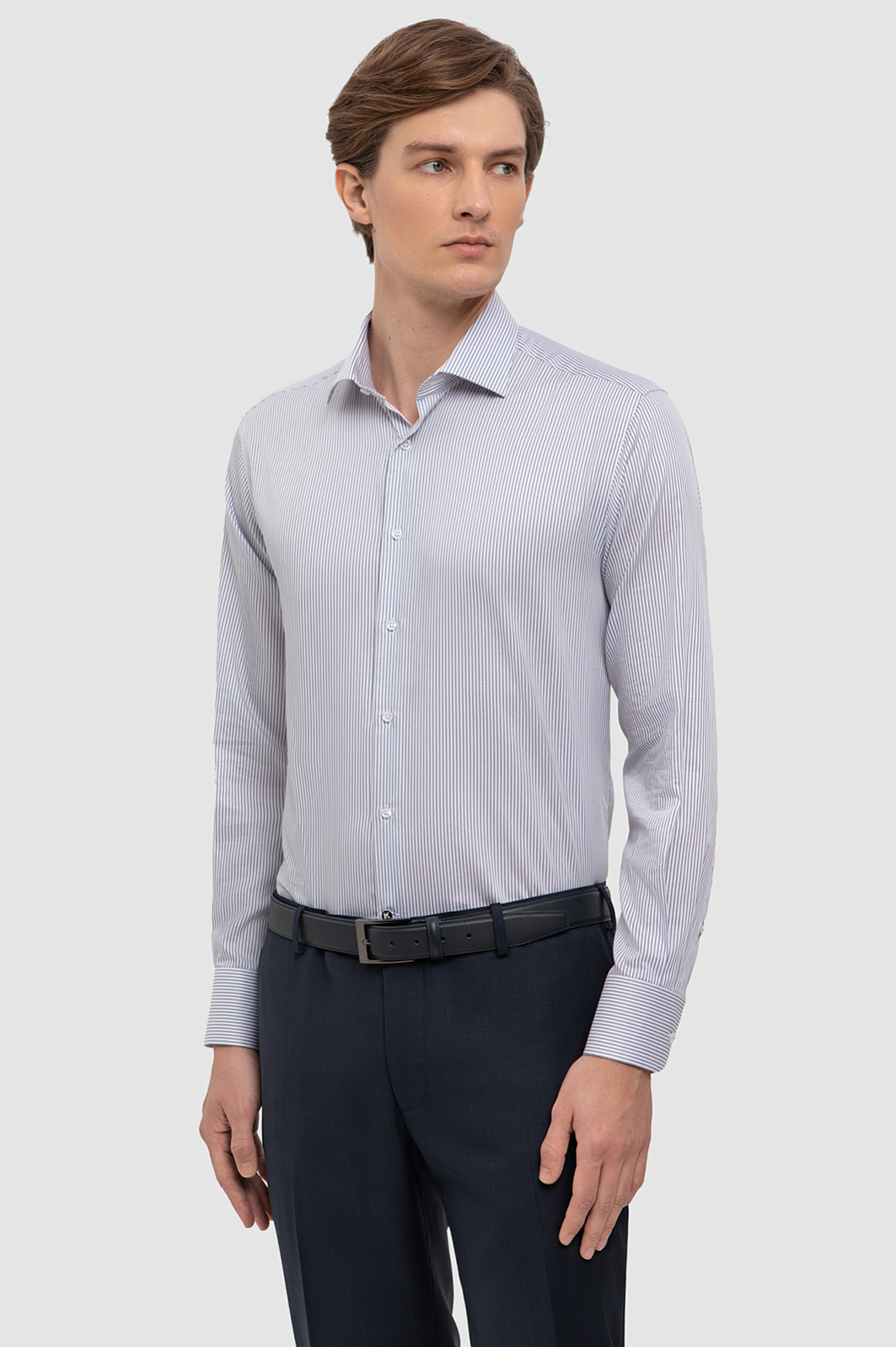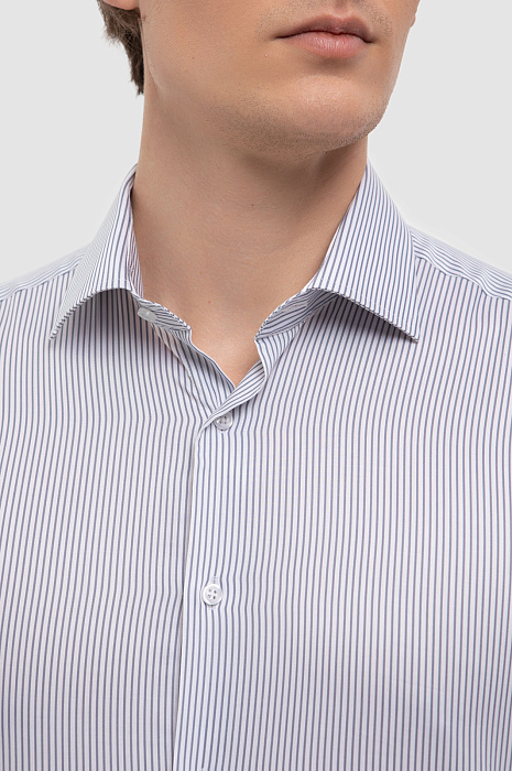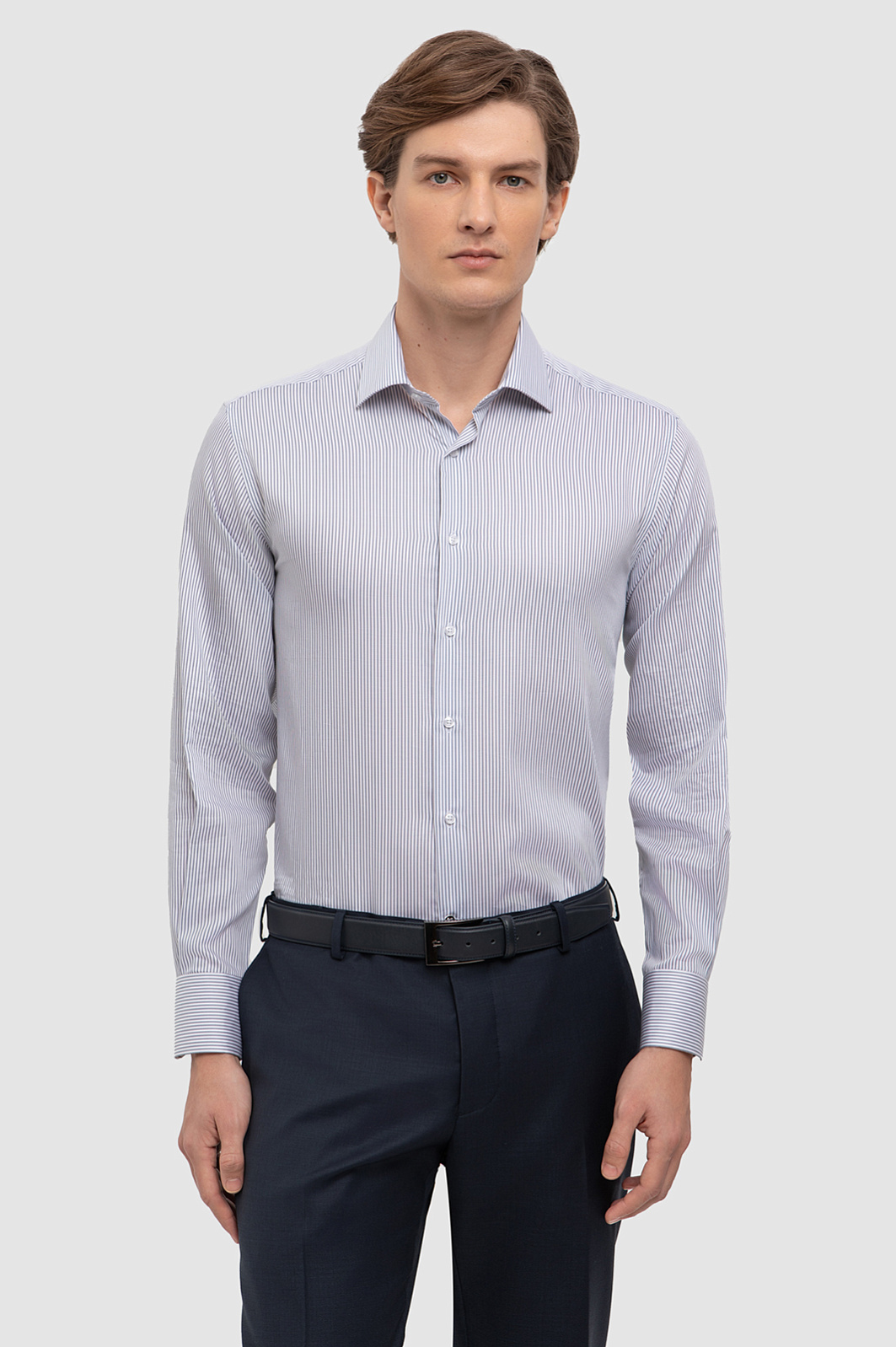 Для создания приталенной рубашки с длинными рукавами дизайнеры KANZLER использовали мягкую хлопковую ткань в тонкую синюю полоску. Главная особенность модели - уникальный материал, который хорошо пропускает воздух и оптимально подходит для постоянной носки. Премиальный хлопок прошел специальную обработку, благодаря которой ткань износостойка и легко отстирывается даже от трудновыводимых пятен. Технология препятствует проникновению грязи и пыли в структуру волокна, что делает уход за изделием максимально простым. В сочетании с брюками и пиджаком темных тонов такая модель впишется в официальный деловой образ, подойдет для торжественного мероприятия или ужина в ресторане, а также для более повседневного образа с темно-синими брюками. Параметры модели: рост 191, 97-77-99 Размер на модели: 40