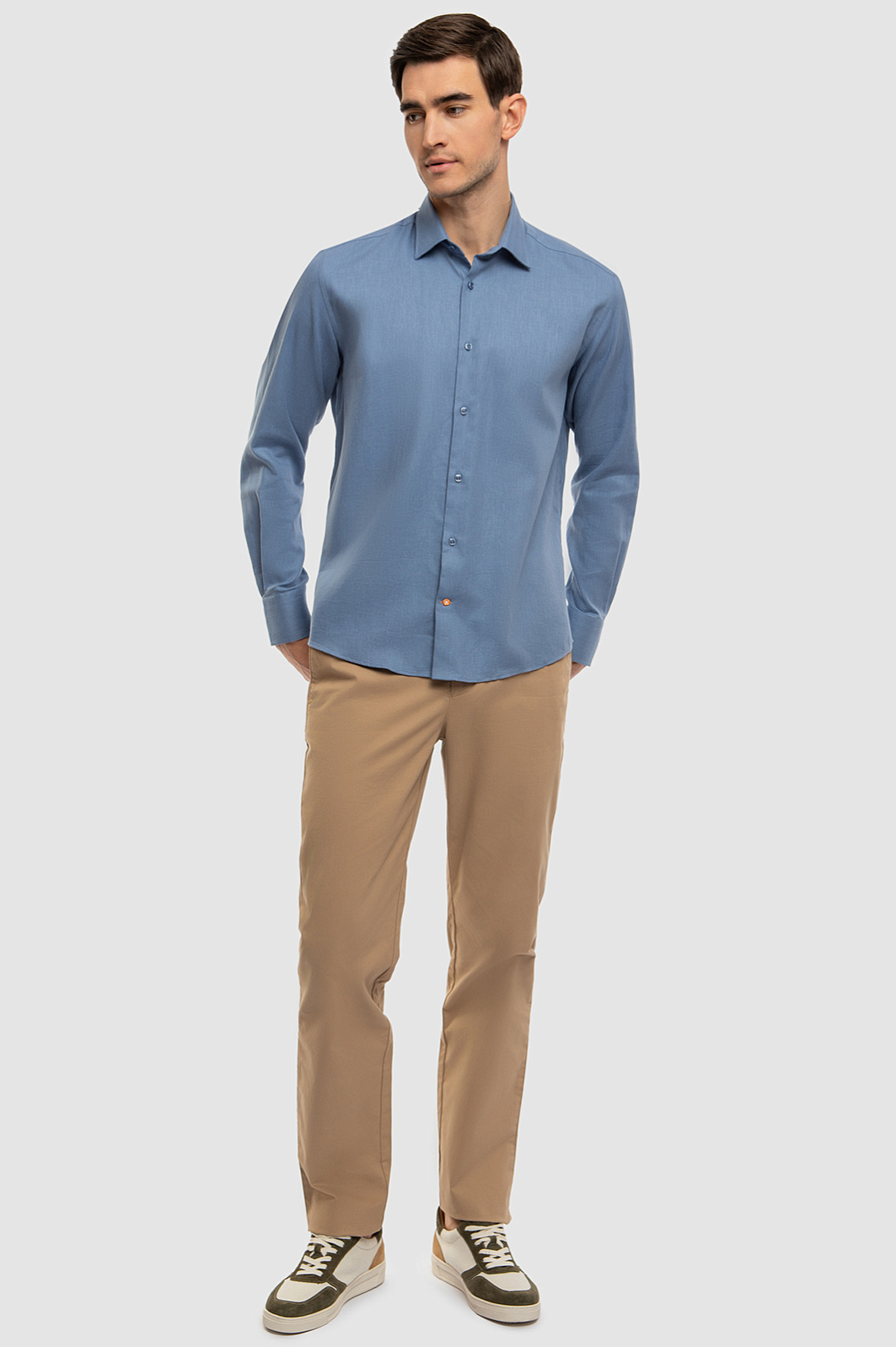 Сорочка KANZLER в матовом голубом оттенке создана из итальянской ткани Monti, качество которой проверено вековой историей бренда. Натуральный материал из хлопка и льна объединяет лучшие свойства природных волокон: хлопок обеспечивает воздухопроницаемость и гипоаллергенность, а лен отвечает за прочность и приятные тактильные ощущения. Свободный крой не сковывает движений и позволяет носить рубашку как элемент многослойного образа. Модель подойдет как для офиса с нестрогим дресс-кодом, так и для отдыха или путешествий. Параметры модели: рост 192, 101-76-97 Размер на модели: 40