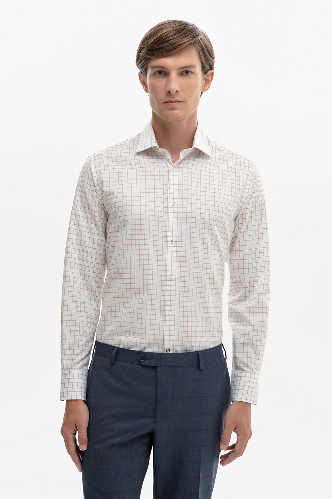 KANZLER представляет рубашку с уникальной технологией лёгкой очистки, которая станет идеальным выбором для делового мужчины. Главное преимущество изделия - технология легкой очистки, которая препятствует проникновению грязи и пыли в структуру волокон ткани. Благодаря этому рубашку легко очистить даже от самых сложных пятен. Выполнена из тонкого хлопка с добавлением деликатного, гипоаллергенного лиоцелла, который обеспечивает особенный комфорт и гигроскопичность при носке. Свободный силуэт отвечает за комфортную посадку. Изделие застёгивается на пуговицы в тон основного материала. Безупречный белый цвет и всегда актуальный принт в клетку делают эту рубашку универсальной и всесезонной. Она подойдёт как для деловых встреч, так и для повседневной носки, легко впишется в образы с костюмом и брюками. Параметры модели: рост 191, 97-77-99 Размер на модели: 40