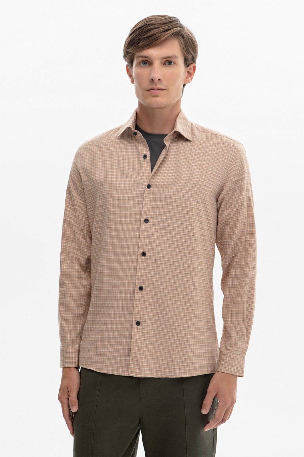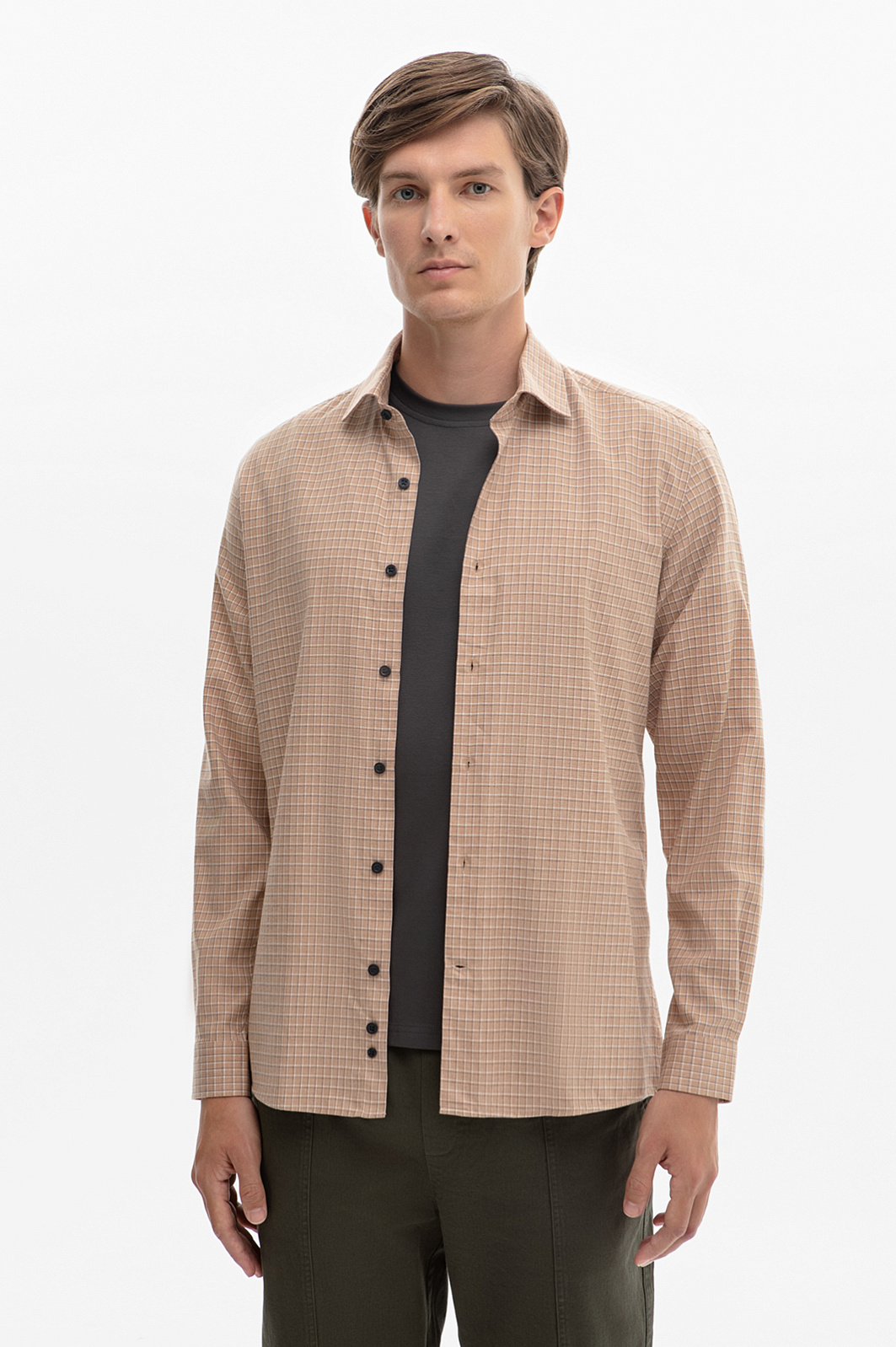 Фланелевая сорочка в клетку из устойчивой к сминанию ткани, цвет коричневый, цена 4 990 руб., код 268641 - купить в Самаре в интернет-магазине KANZLER