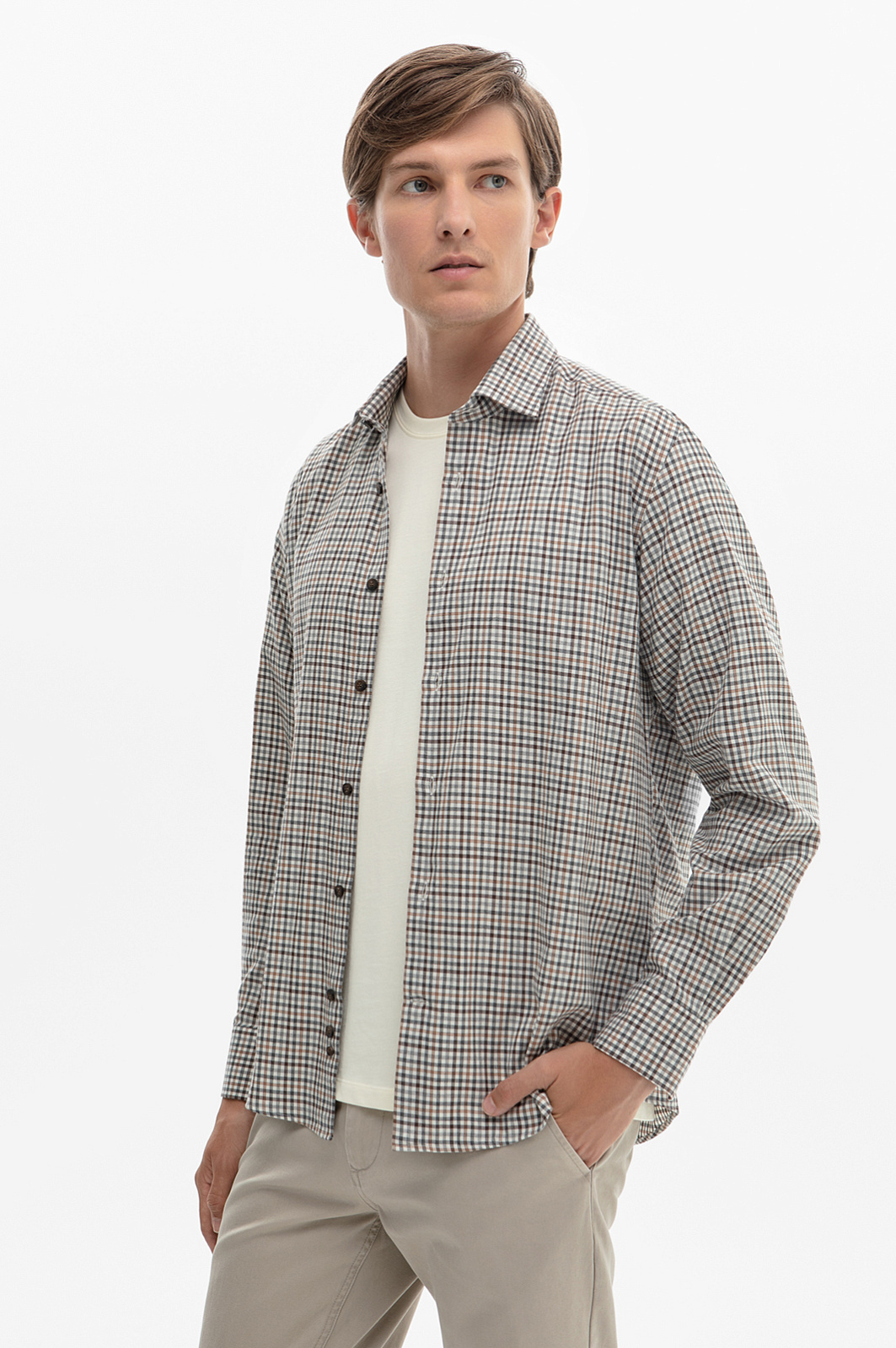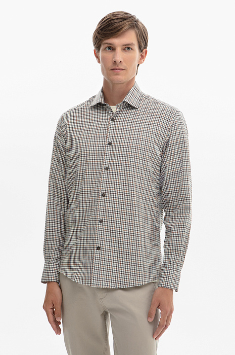 Фланелевая сорочка в клетку, цвет коричневый, цена 8 990 руб., код 268647 - купить в Самаре в интернет-магазине KANZLER