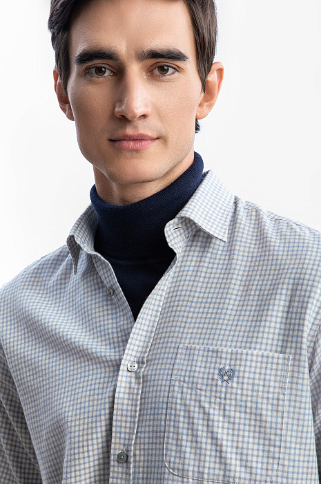 Фланелевая рубашка KANZLER в голубую клетку из хлопка и шерсти из лимитированной коллекции, которая объединяет дизайнерские вещи из дорогих материалов, представляет собой гармоничное сочетание уюта и современного стиля. Она отлично сочетается с джинсами и неформальными брюками из плотного хлопка и шерсти. Приятная текстура фланели и универсальный освежающий узор легко вписываются в городские и «пятничные» офисные образы. Лаконичный накладной нагрудный карман с фирменной вышивкой подчеркивает архитектуру рубашки и придает современный вид. Добавление шерсти (10%) делает вещь тёплой, мягкой и особенно комфортной в прохладную погоду. Легкий гипоаллергенный хлопок отвечает за воздухопроницаемость и приятные тактильные ощущения.
