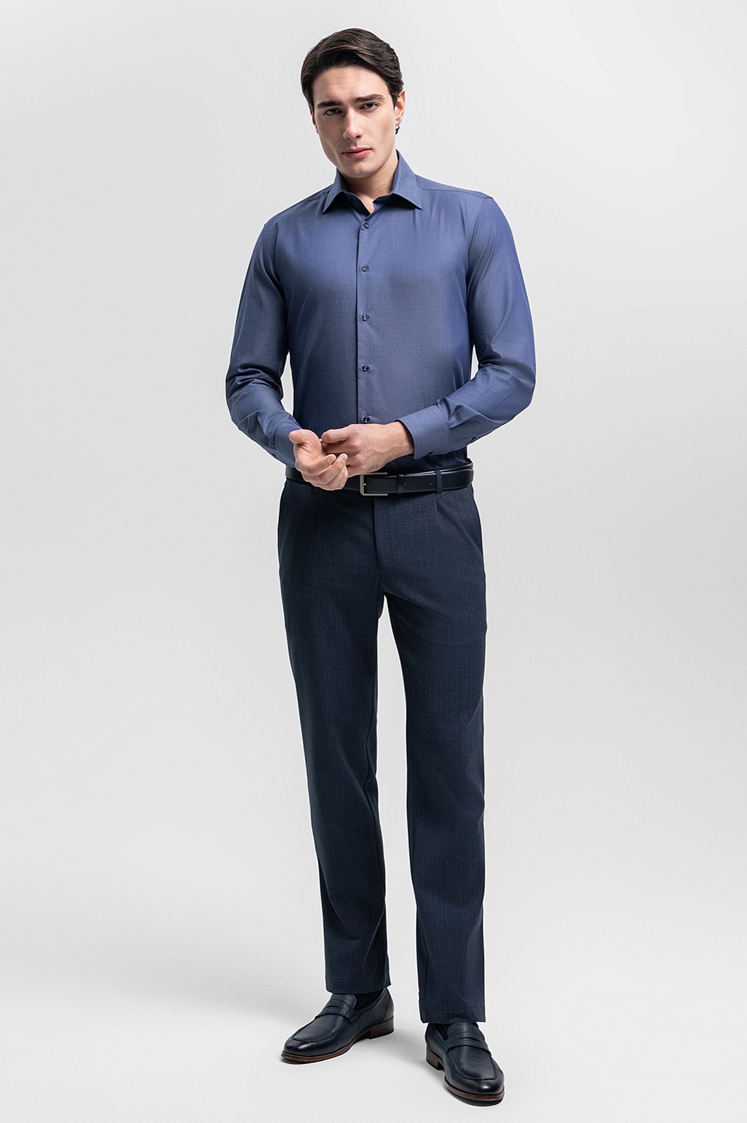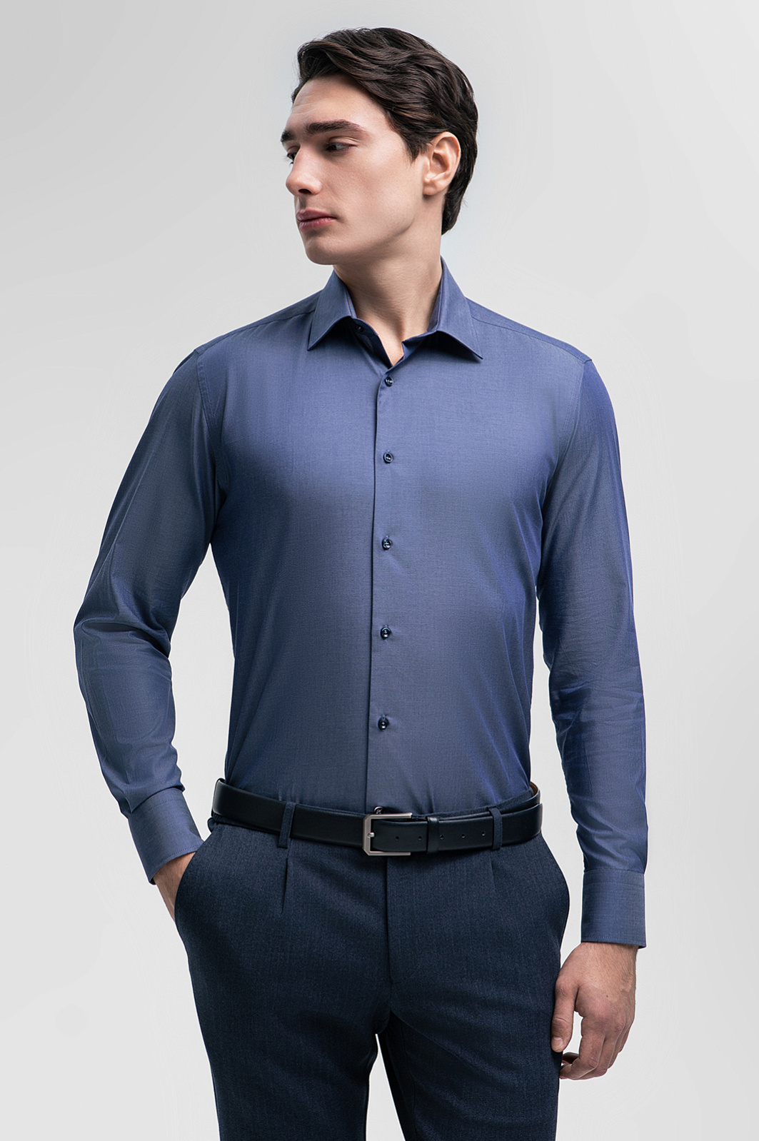 Сорочка KANZLER в благородном матовом синем оттенке подчеркнет статус и безупречный вкус ее обладателя. Модель выполнена из 100% хлопка, мягкого гипоаллергенного материала, обеспечивающего комфорт и воздухообмен на протяжении активного рабочего дня. Классический крой подходит любому типу фигуры и не сковывает движений. Синяя сорочка органично впишется в образы как для деловых встреч, так и для неофициальных мероприятий, добавив нотку утонченности и элегантности. Параметры модели: рост 190, 103-83-99 Размер на модели: 40
