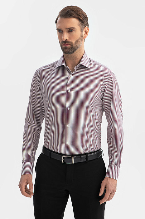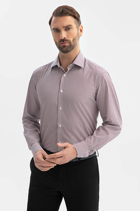 Сорочка из хлопка в полоску, цвет бордовый, цена 6 990 руб., код 269316 - купить в Самаре в интернет-магазине KANZLER