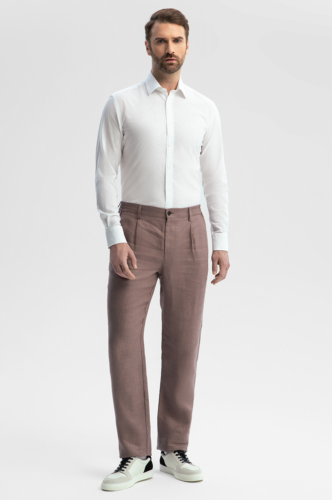 Белая сорочка KANZLER из австрийской ткани Getzner отлично впишется в летний офисный гардероб и будет эффектно смотреться на отдыхе. На сборы потребуется всего пара минут — сорочка сочетается с любыми джинсами и неофициальными брюками. Свободный крой дает возможность чувствовать себя легко и непринужденно в любой ситуации. Лен плюс хлопок — самый комфортный микс для теплых дней. Гигроскопичный износоустойчивый лен создает в жару ощущение прохлады. Воздухопроницаемый дышащий хлопок придает ткани легкость. Параметры модели: рост 189, 102-80-99 Размер на модели: 40